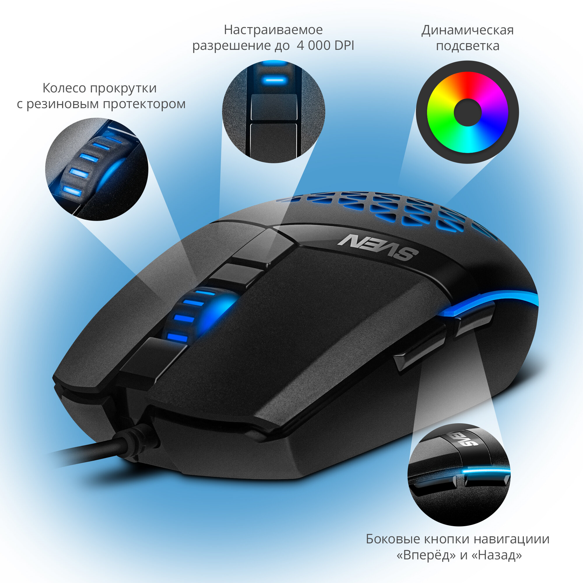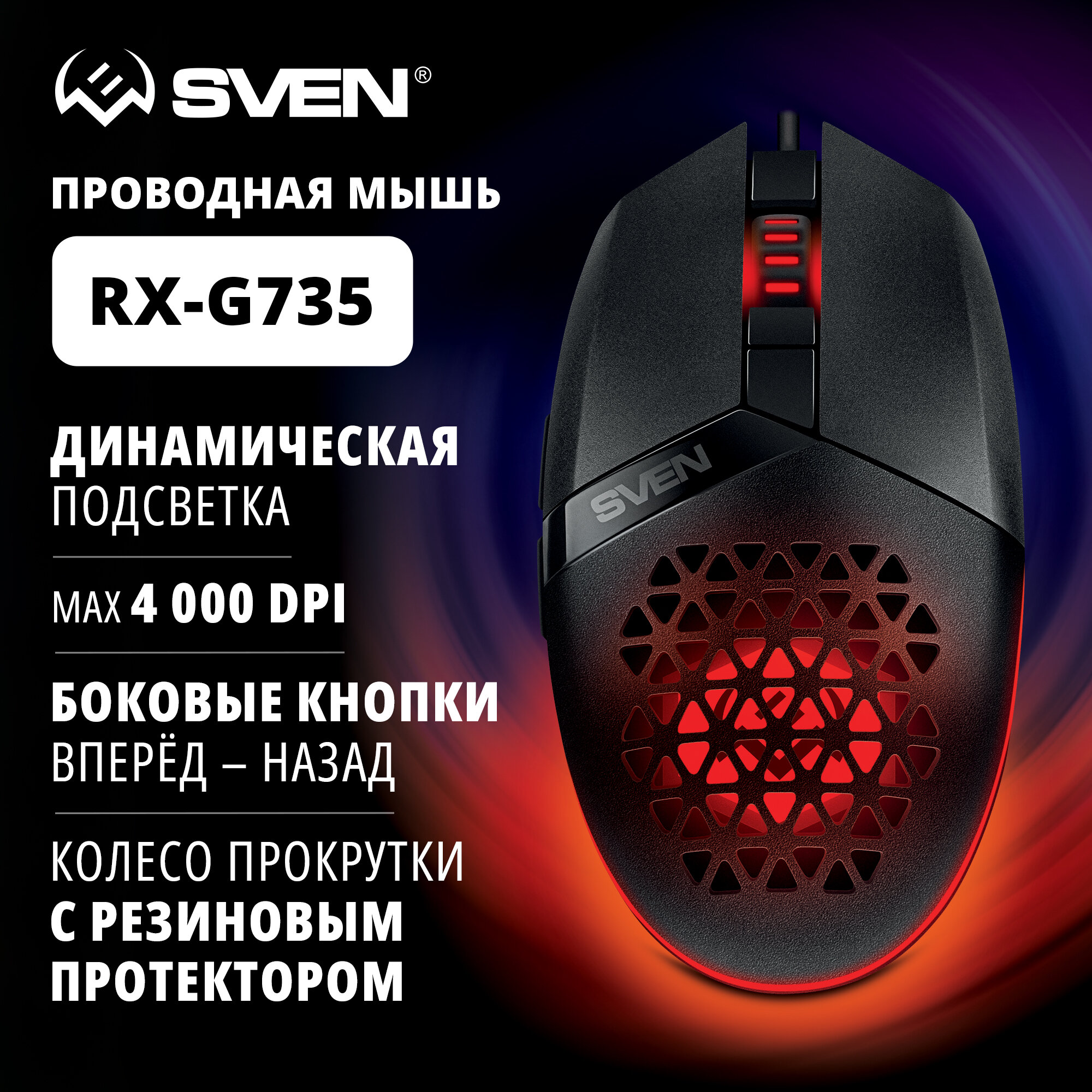 Мышь Sven игровая RX-G735 USB (5+1кл. 1200-4000DPI подсветка) SV-021467