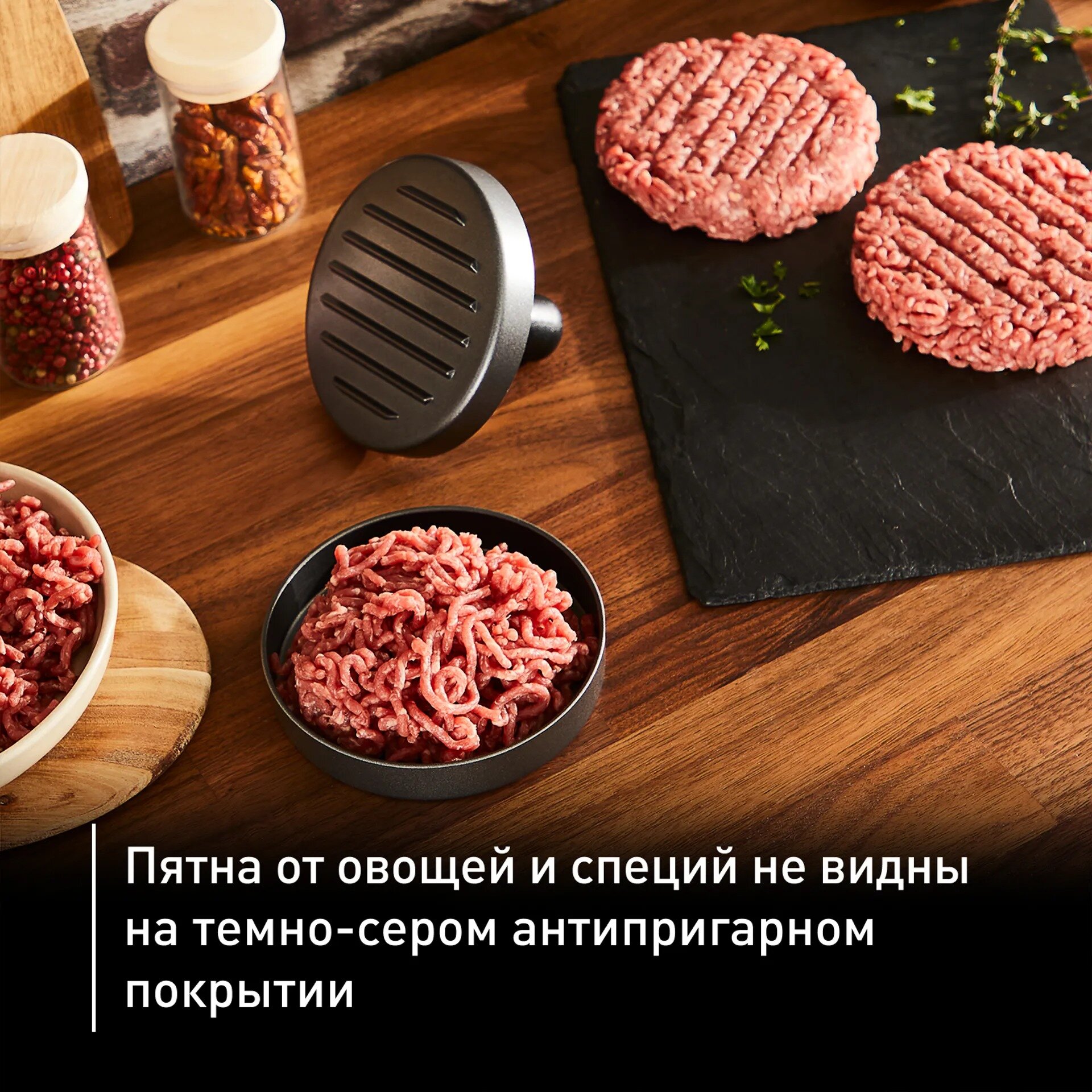 Готовьте на гриле вместе с Tefal! Пресс для гамбургеров Tefal позволяет приготовить идеальные мясные, рыбные или овощные котлеты для гамбургеров всего за один прием.