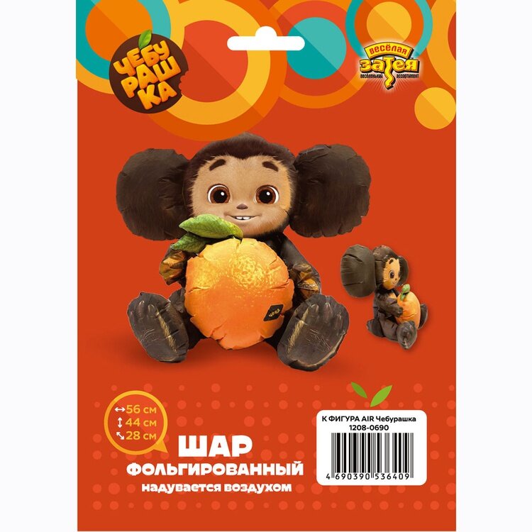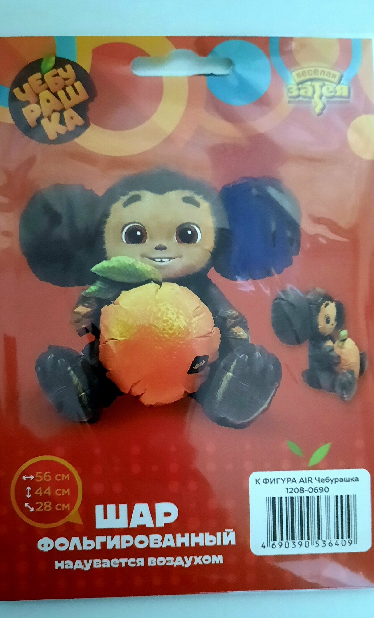 Игрушка: объёмный 3D воздушных фольгированный шар. Рекомендуется надувать воздухом,гелий не требуется (трубочка для надува воздухом входит в комплект). В упаковке Чебурашка и Апельсин - каждый шар имеет клапан и надуваются отдельно. Апельсин можно приклеить к лапам Чебурашки с помощью входящих в комплект клейких элементов. Размер надутого шара 56cm*44cm*28cm. Продается в ненадутом виде.
