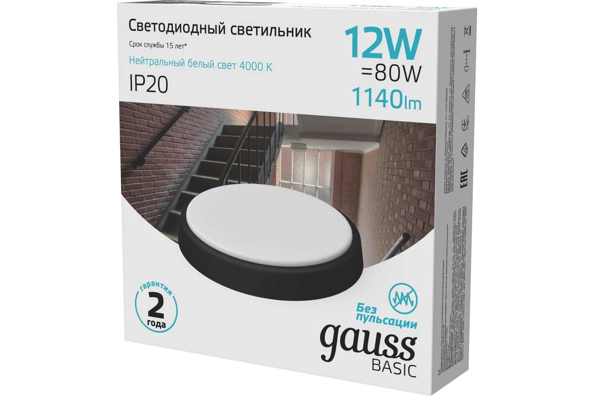 Сервис сравнения цен СкидкаГИД предлагает сравнить цены на товар «светильник светодиодный GAUSS Basic 12Вт 1140Лм 4000K IP20 круг черный (193411312B)»