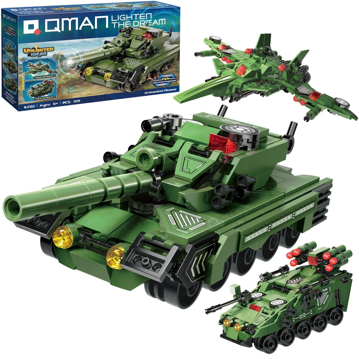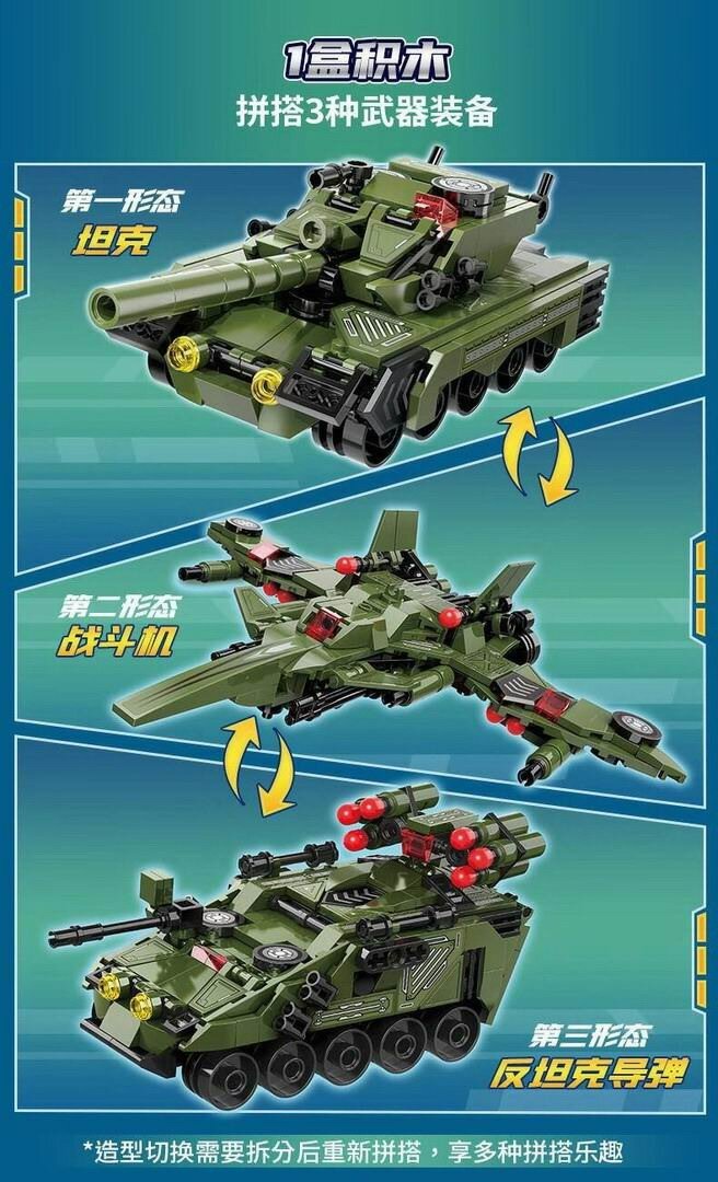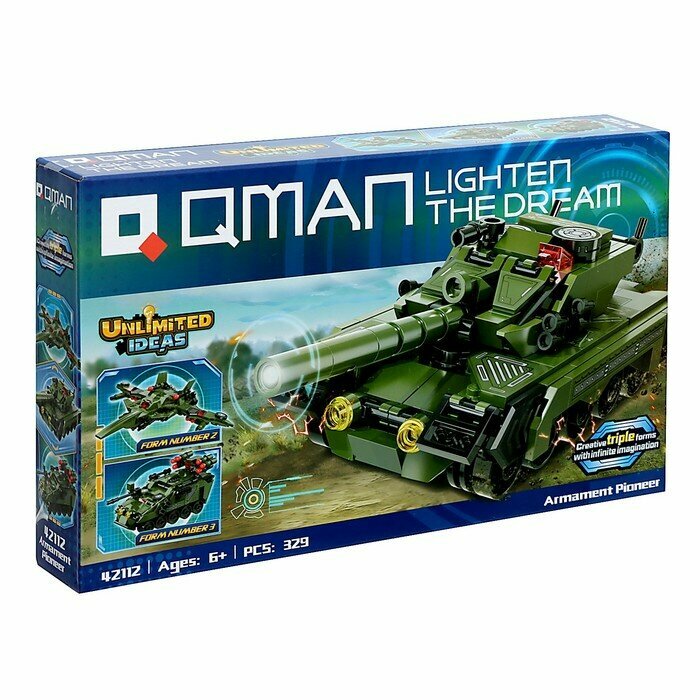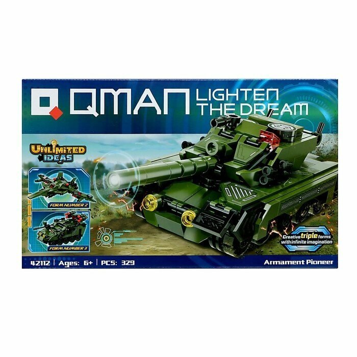 Конструктор Qman серия Unlimited Ideas 3в1 Танк или боевая машина или истребитель 329 деталей