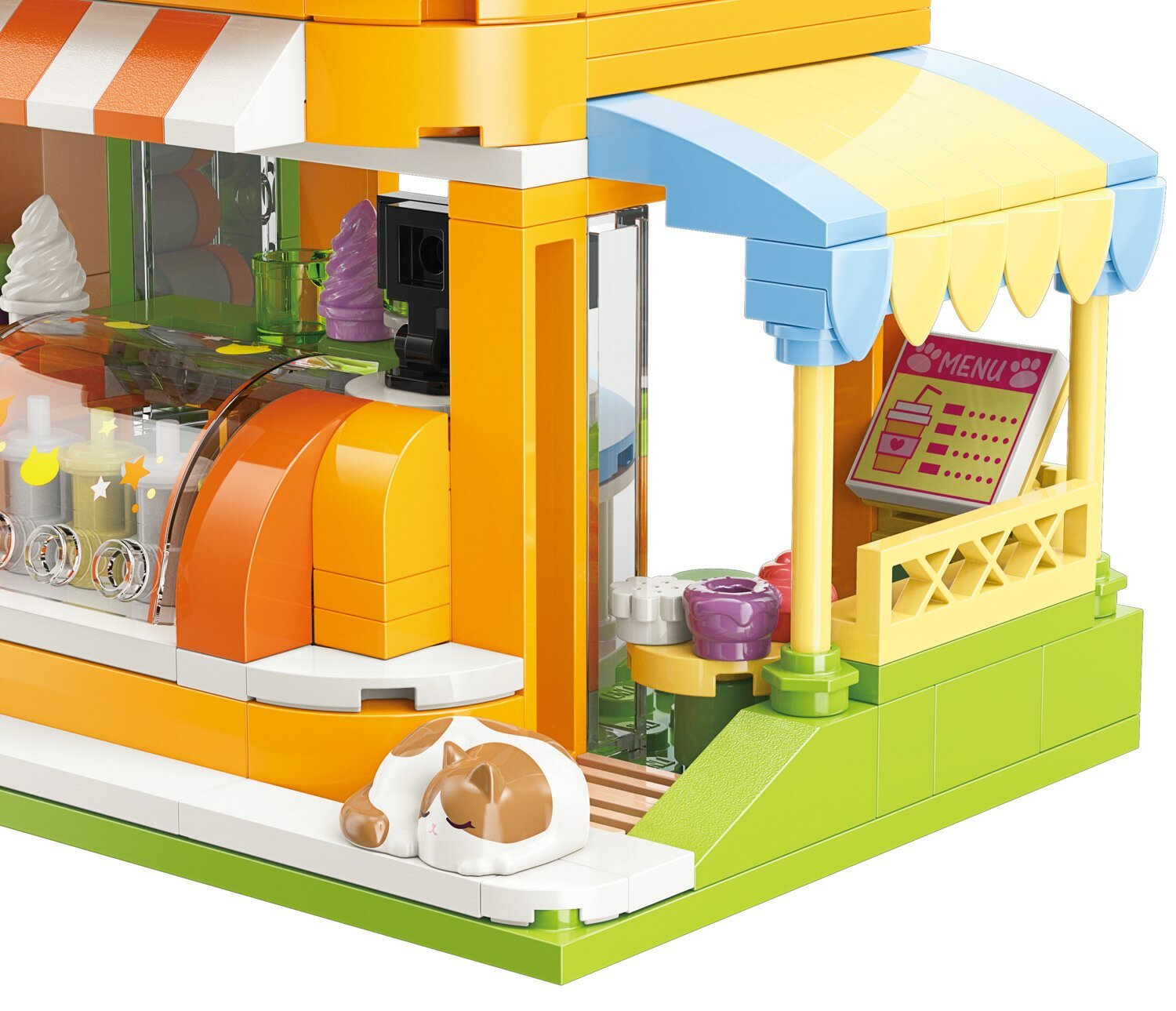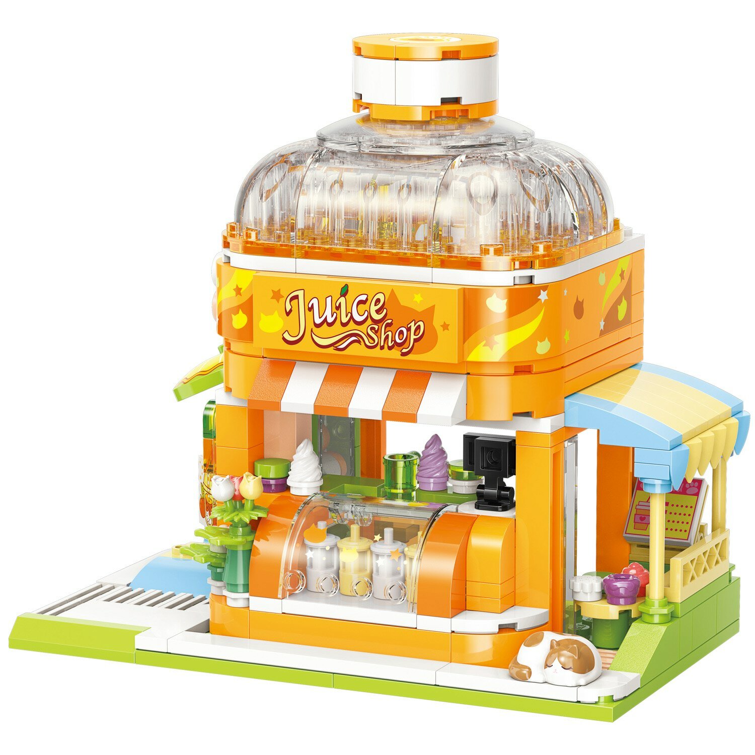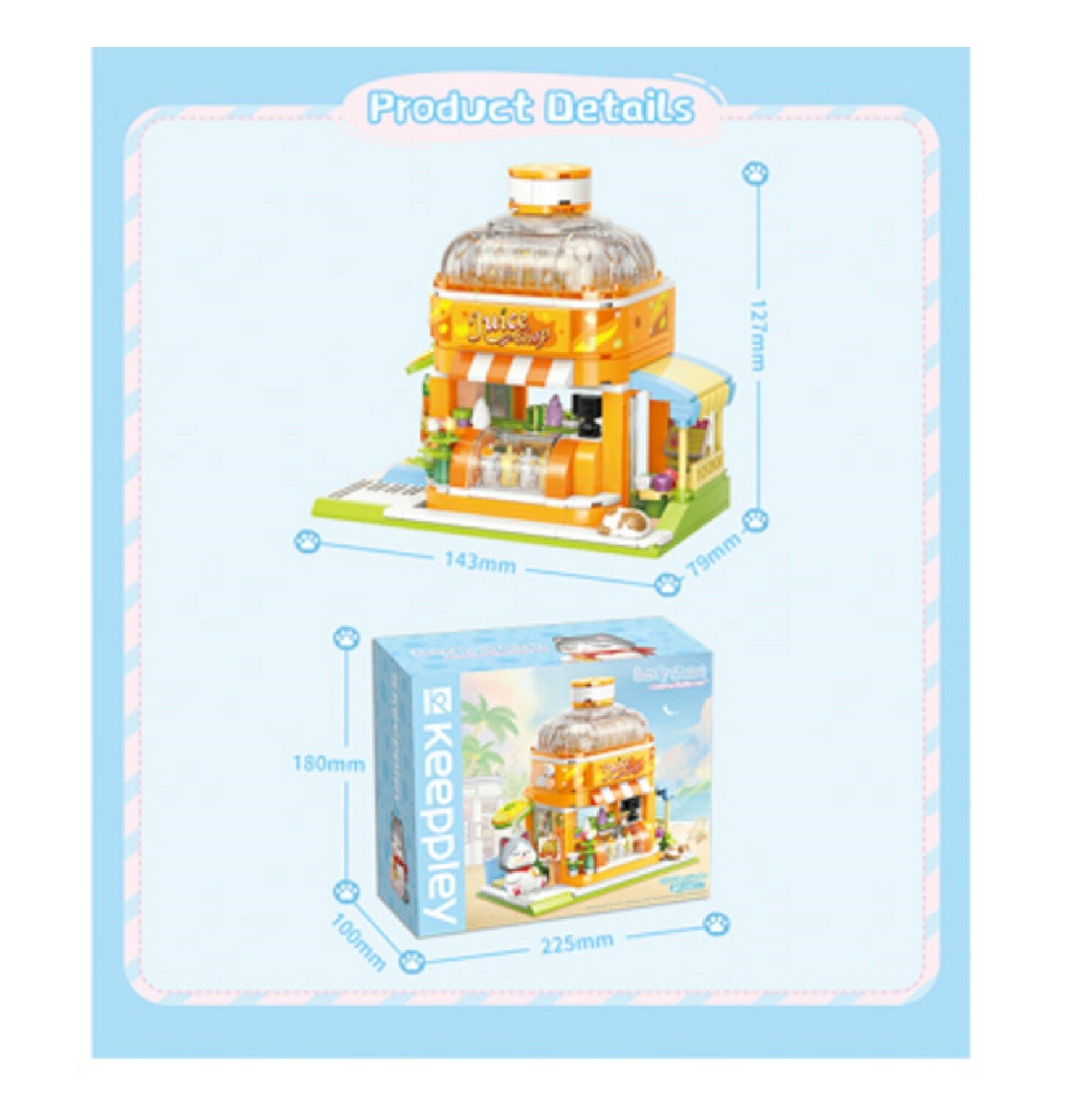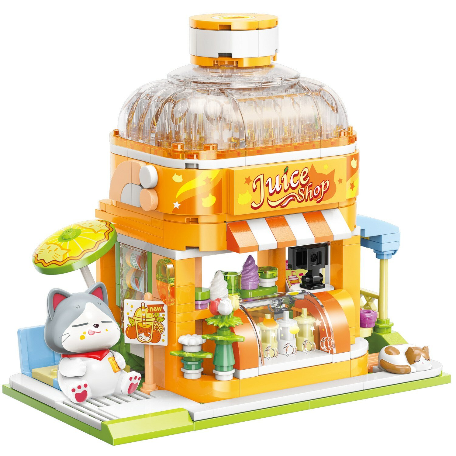 Из конструктора от бренда Keeppley из серии «Lovely Street» ребенок может собрать собственными руками магазин с освежающими напитками, которым управляет очаровательный котик. Простое и надежное соединение деталей разных размеров и форм между собой обеспечат специальные крепления.