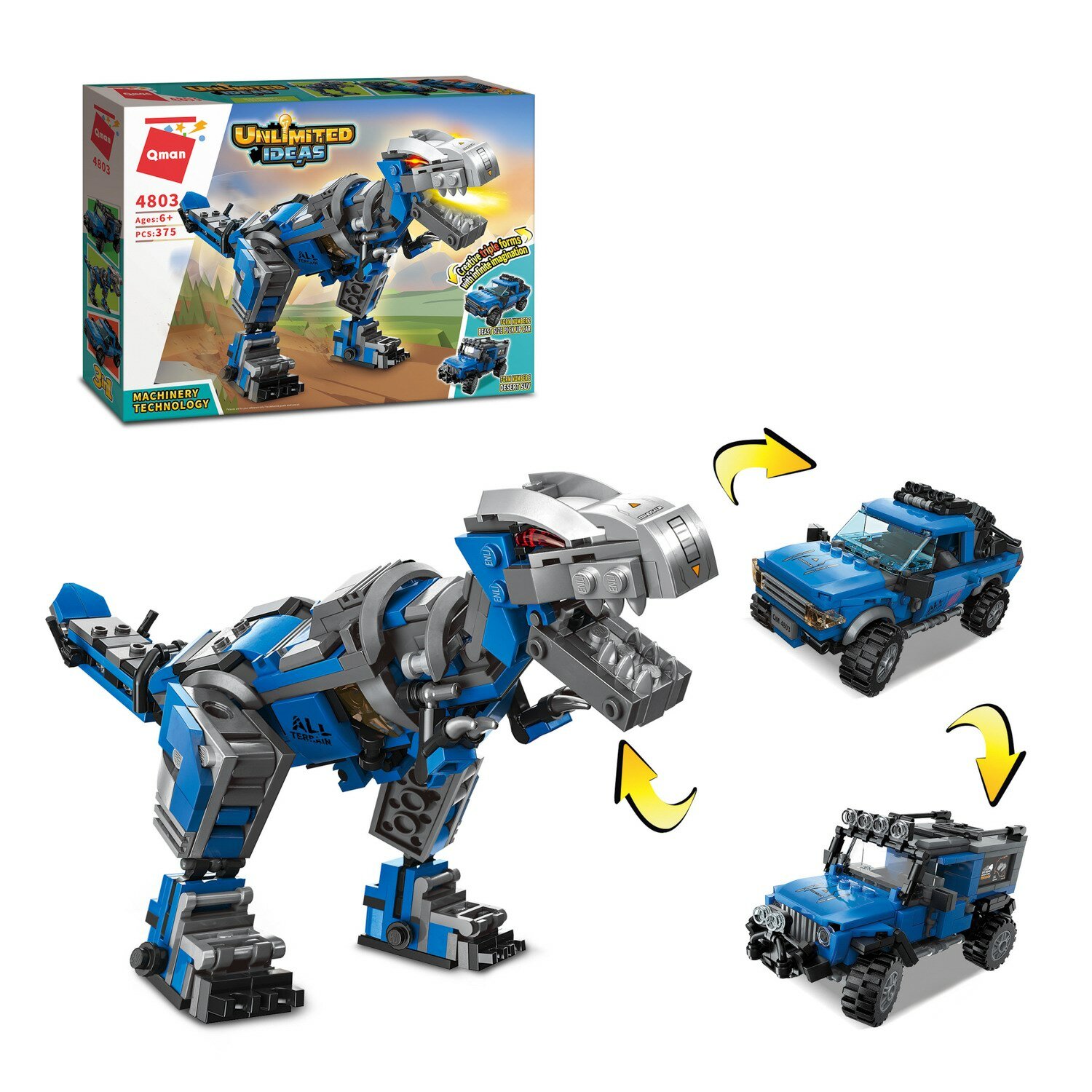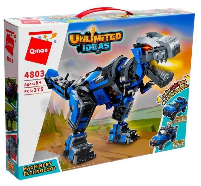 Конструктор Qman серия Unlimited Ideas 3в1 Динозавр Тираннозавр или 2 вида джипов 375 деталей