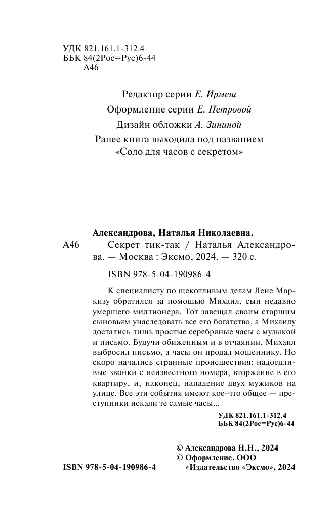 Книга: Секрет тик-так (Александрова Наталья Николаевна); ООО "Издательство "Эксмо", 2023