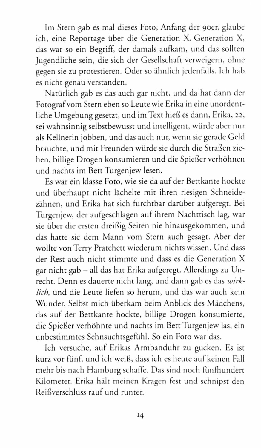 «Ich kann nicht mit jemandem zusammen sein, hat Erika gesagt, der sich fur rein gar nichts interessiert. Dann ist ja alles in Ordnung, habe ich gesagt. Und darauf Erika: Genau das meine ich.»
