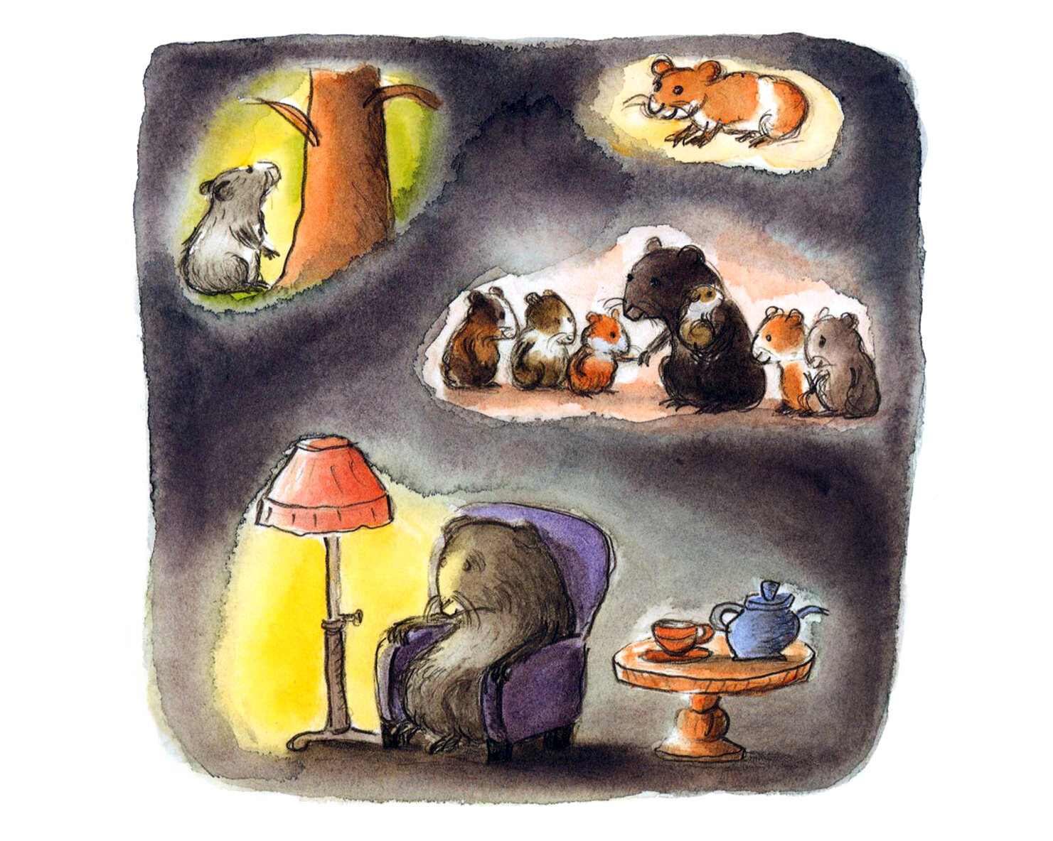 An einem Mittwochmorgen kann Herr Muffin nicht mehr aufstehen. Es tut so weh im Bauch und in den Beinen. Eine Tierarztin kommt und druckt und klopft auf seinen Bauch, dass er schreien muss. Danach schuttelt die Tierarztin den Kopf.