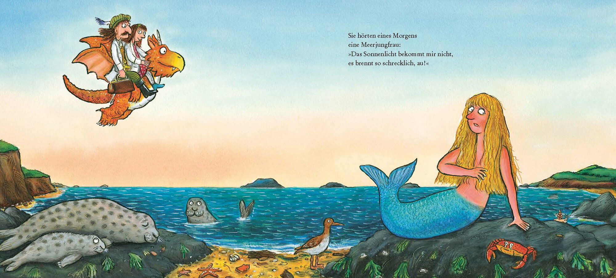 Prinzessin Perle, Ritter Schlagedrein und der Drache Zogg fliegen durch die Welt, um gute Taten zu vollgringen.Sie helfen Meerjungfrauen, verabreichen erkalteten Lowen Medizin, befreien Einhorner von falschen Hornern. Der Konig jedoch mochte seine Nichte Perle zum Nahen und Sticken verdonnern. Erst als er selbst ihre Hilfe braucht, versteht er, dass man niemandem von seinem Gluck abhalten kann – ein Madchen wie Perle schon gar nicht. Ein Bilderbuch des unschlagbaren Bilderbuchduos, das mit Bildern und Reimen sogar heilen und trosten kann.