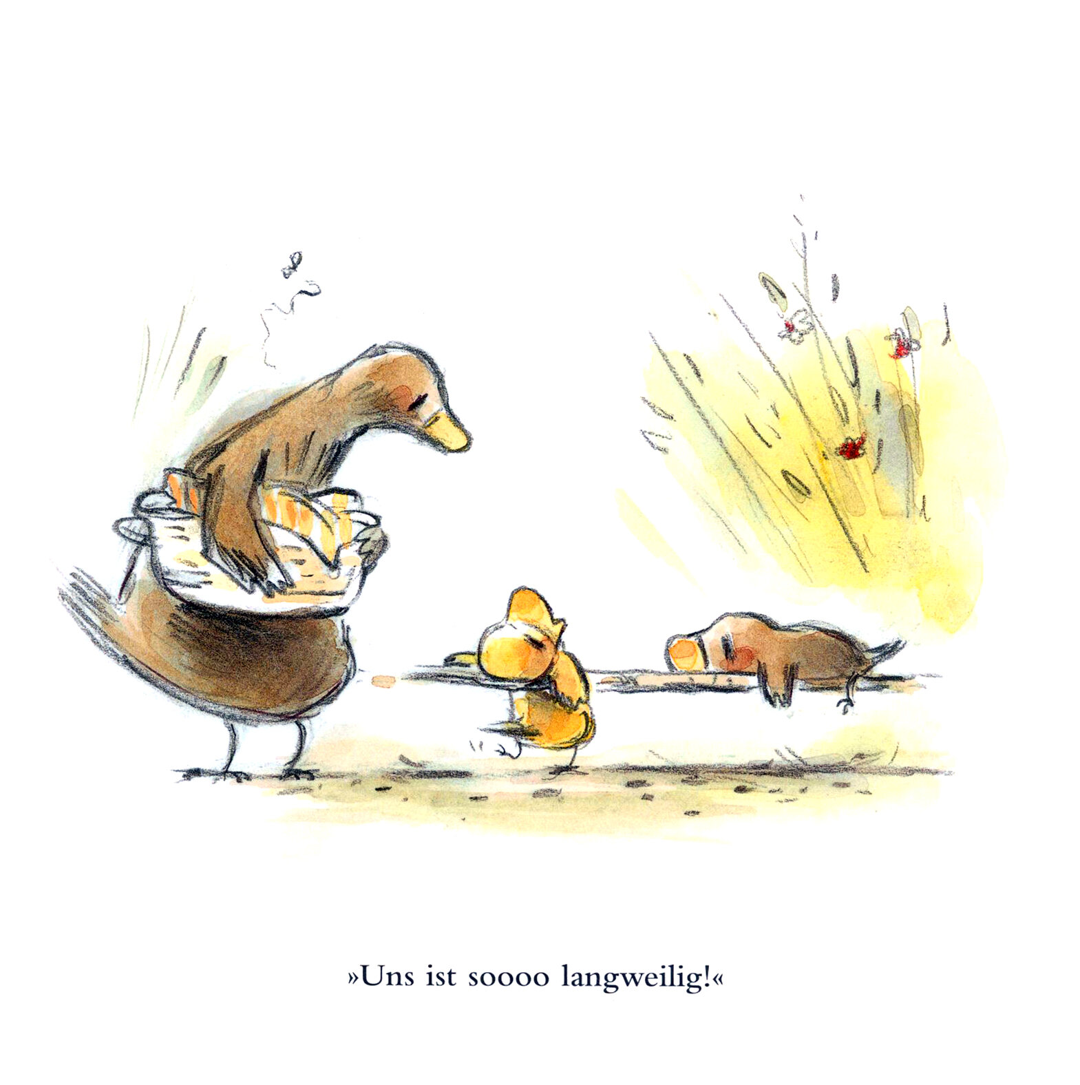 O wie langweilig konnen manche Tage sein. Die Vogelkinder halten es kaum aus! Warum blo? durfen sie nicht mehr auf dem Tablet spielen?