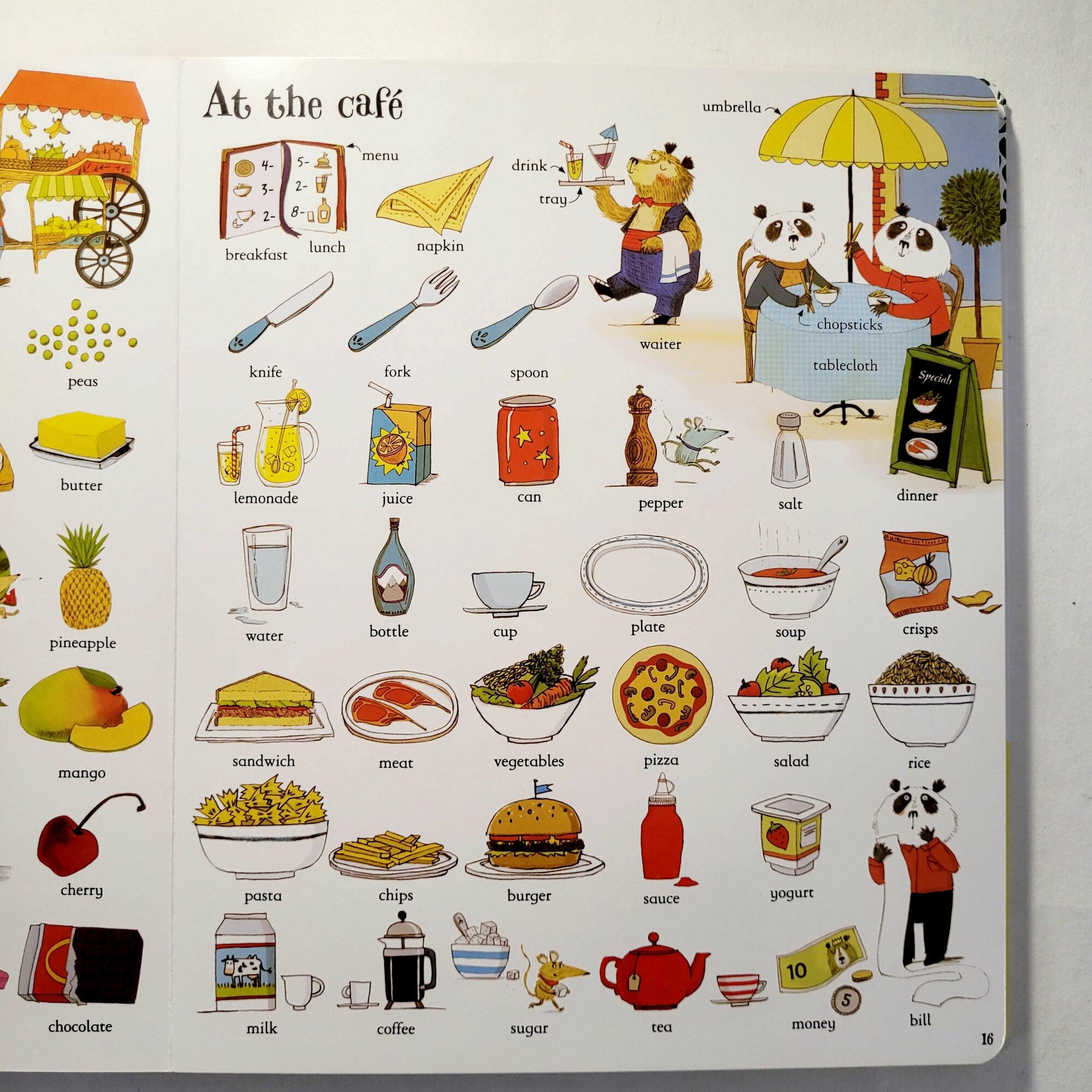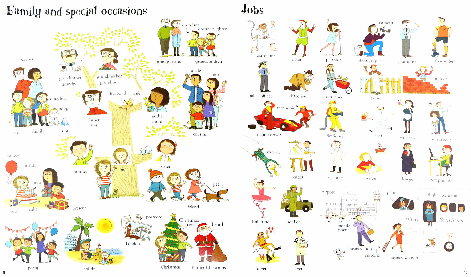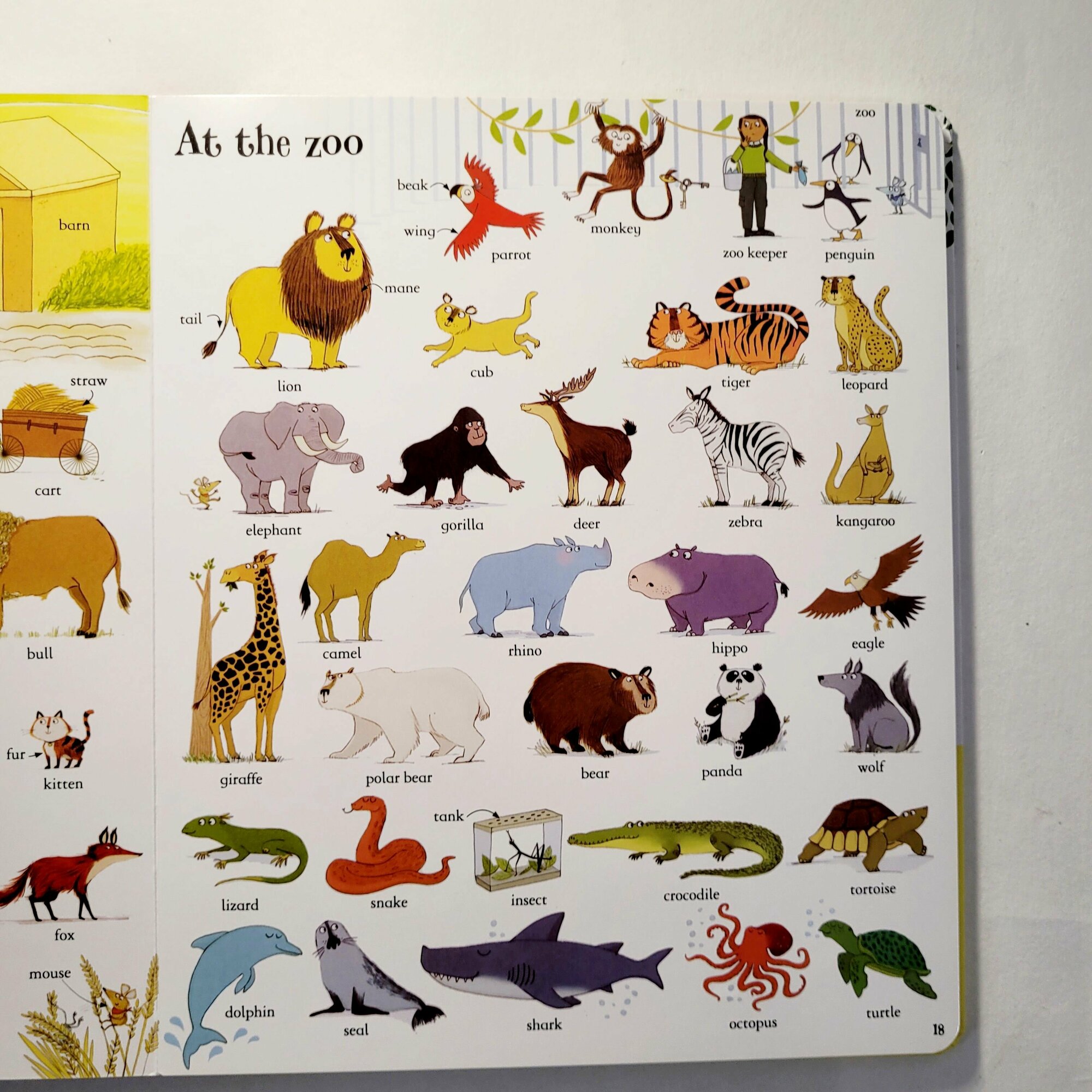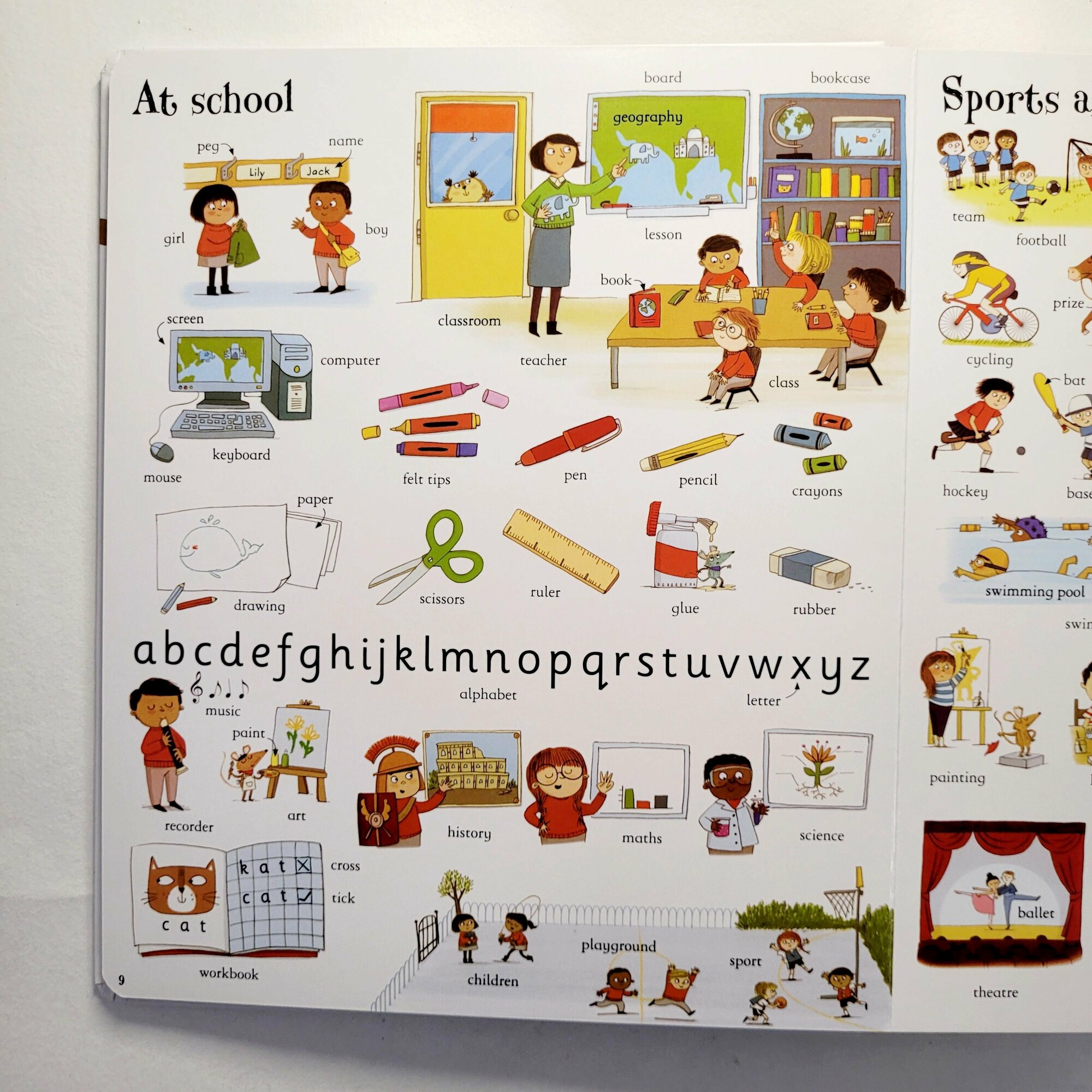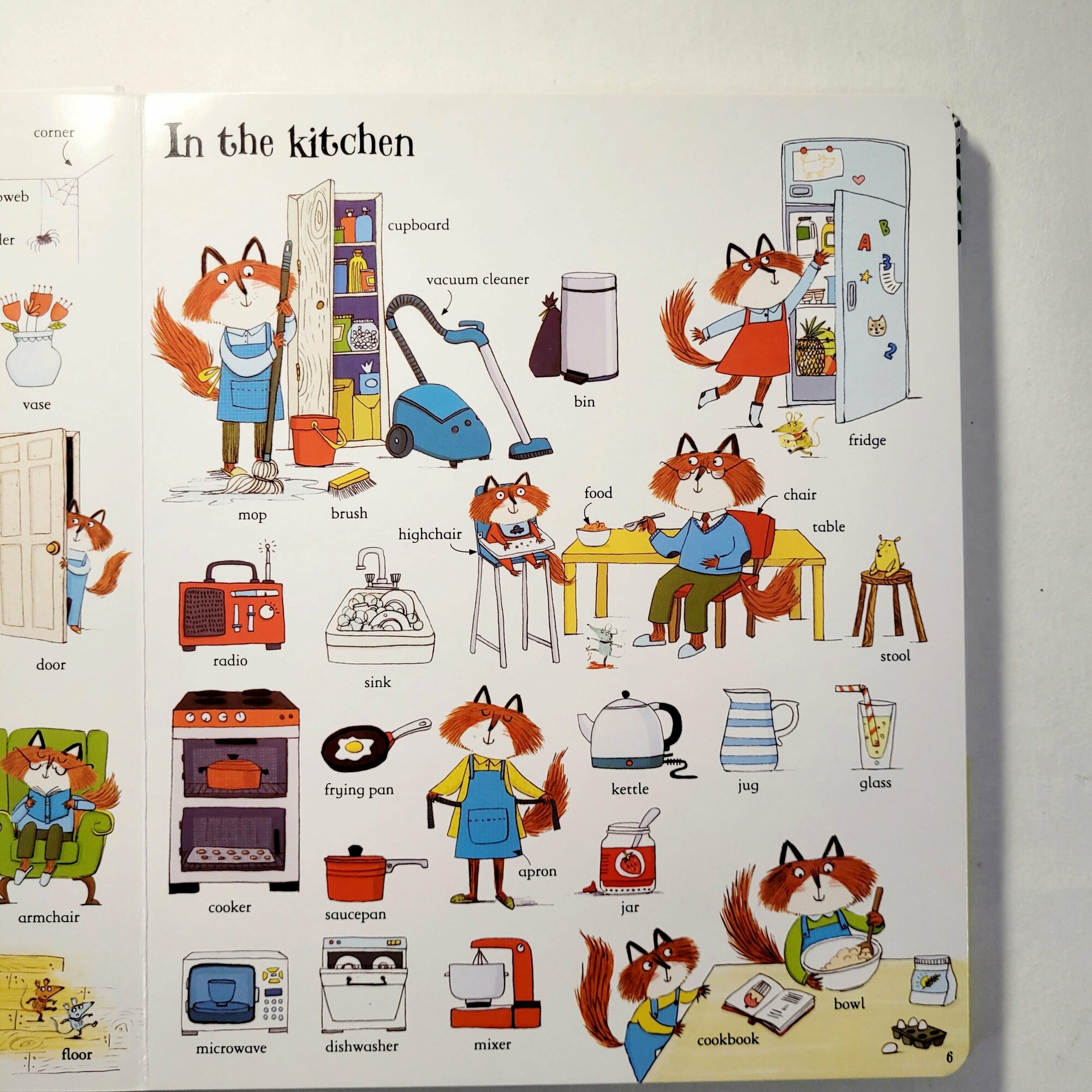 A colourful picture word book with illustrations of around a thousand everyday words. Words are arranged by theme, providing lots to spot and talk about together. A fun way to build a child’s vocabulary, with delightful pictures to pore over. Listen to all the words read by a British English speaker at the Usborne Quicklinks website.