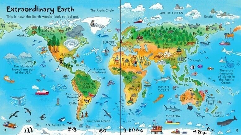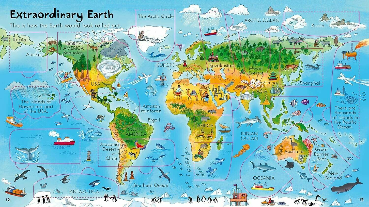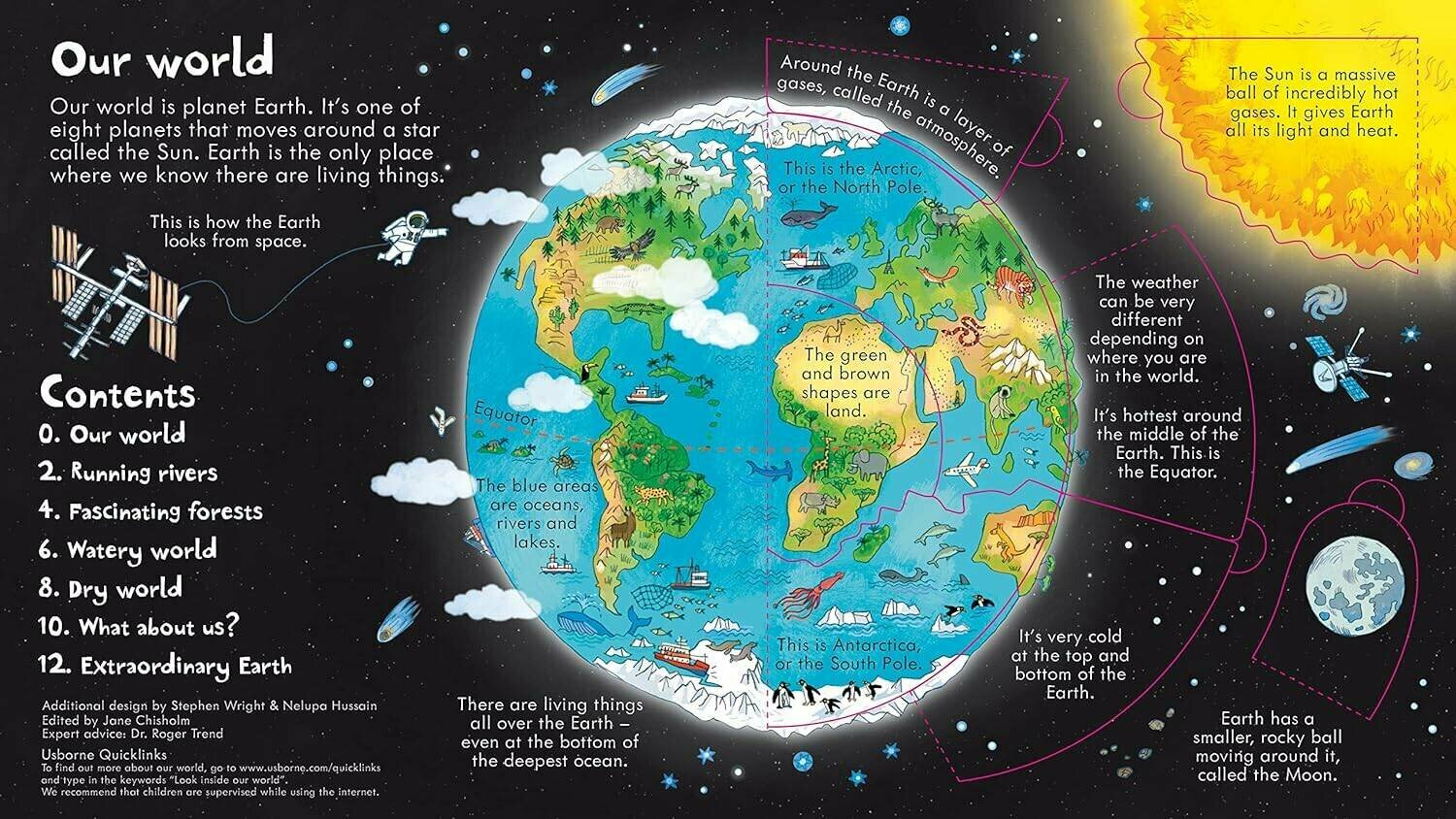 Take a trip around the world in this fascinating lift-the-flap book. With over 80 flaps to lift, intrepid explorers can discover our world, from the layers that make up planet Earth to the tiniest insects in the rainforest and the creatures who live at the very bottom of the sea. Includes pages about the hottest and coldest parts of the world, and a map with lift-the-flap details about each continent. A colourful and fun introduction to geography with internet links to find out more.