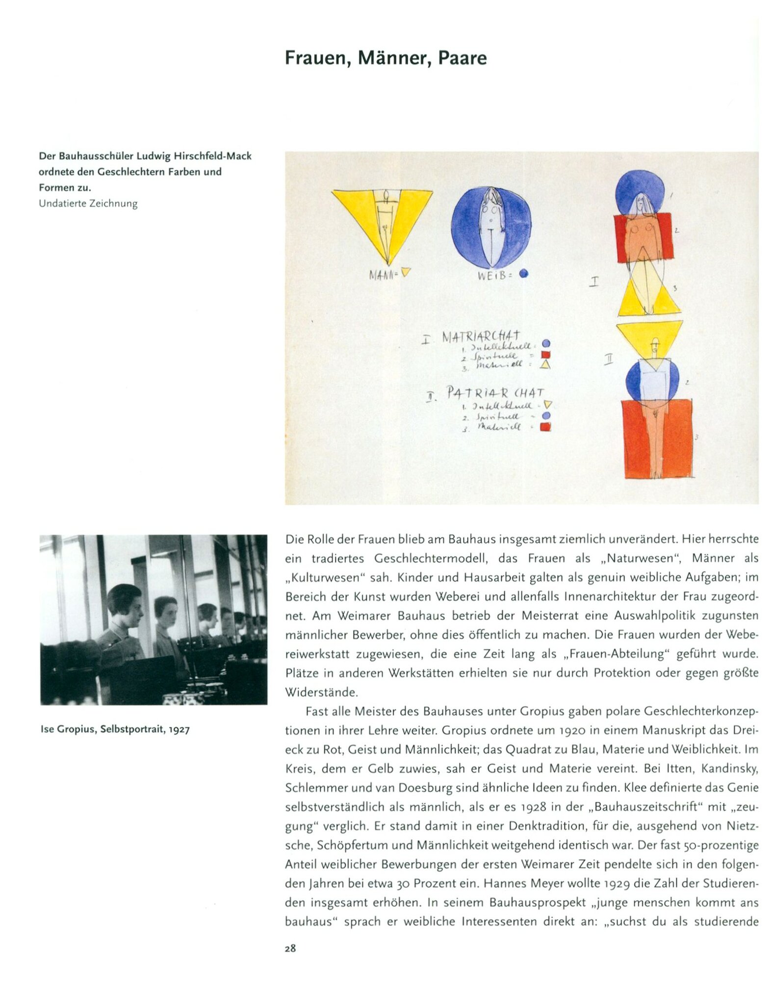 Das Kunstlerkollektiv mit Au?enwirkung war zugleich eine enge personliche Gemeinschaft. Gegrundet wurde die Schule von Walter Gropius (1883-1969), zu den Mitgliedern gehorten Josef und Anni Albers, Wassily Kandinsky, Paul Klee, Oskar Schlemmer, Gunta Stolzl, Marianne Brandt und Ludwig Mies van der Rohe. An allen drei aufeinander folgenden Standorten der Schule in Weimar, Dessau und Berlin herrschte ein reger kreativer Austausch zwischen den Schulern und Lehrern, die zwar alle unterschiedliche kunstlerische Stile und Vorlieben pflegten, jedoch in ihrem Idealismus und dem Streben nach einem „Gesamtkunstwerk“ vereint waren.