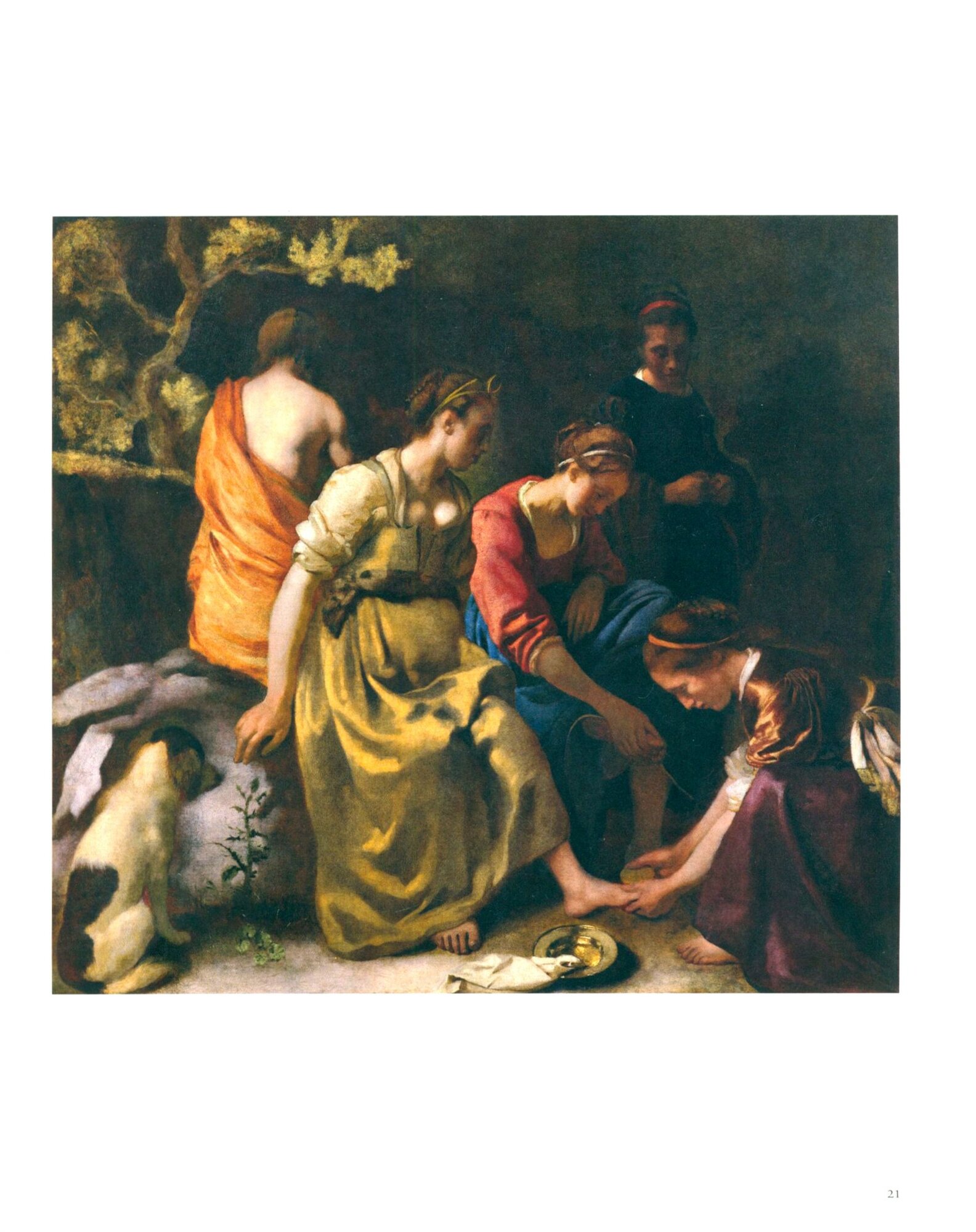 Vermeers Figuren verrichten alltagliche Handlungen: Sie schreiben Briefe, spielen ein Instrument oder arbeiten in der Kuche. Die Szenen erstaunen durch ihre Liebe zum Detail, den betorenden Lichteinfall sowie das Talent des Kunstlers, narrative Intrigen anzudeuten. In so bekannten Bildern wie Stehende Virginalspielerin, Briefschreiberin und Dienstmagd sowie dem beruhmten Madchen mit dem Perlenohrring, dem Portrat eines Madchens mit hellwachen Augen, geht es Vermeer nicht nur um Stoffe und Materialien, sondern auch um die vielen Geschichten und Geheimnisse, die unter der Oberflache lauern.