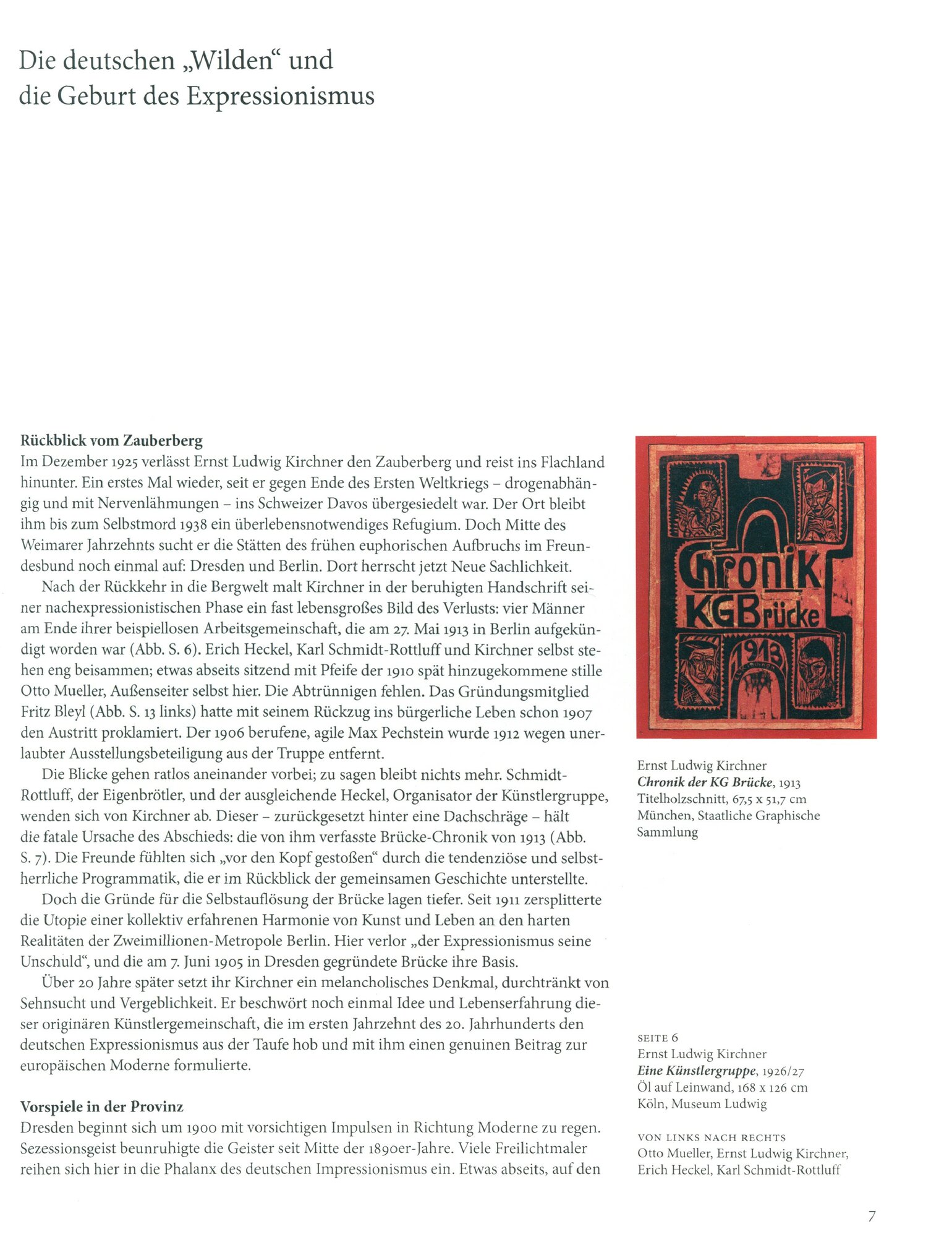 „Koloritexzesse“, „Linientobsuchtsanfalle“, schaumten Kunstkritik und das Dresdener Feuilleton, als es die ersten Werke der jungen Kunstlergruppe Die Brucke (1905–1913) zu sehen bekam und diese nur als „Vorspiel zum gro?en Hollenkarneval der Zukunftsmalerei“ interpretieren konnte. Mit diesem Ergebnis durften die verantwortlichen Kunstler zufrieden gewesen sein, schlie?lich war es das erklarte Ziel von Ernst Ludwig Kirchner, Fritz Bleyl, Erich Heckel und Karl Schmidt-Rottluff, allesamt Architekturstudenten und kunstlerisch unvorbelastet, der kunstakademischen Welt und dem burgerlichen Kulturbetrieb den Hut vom Kopf zu schlagen. Ihr programmatischer Aufruf von 1906, von Kirchner im Holzschnitt festgehalten, forderte „Arm- und Lebensfreiheit gegenuber den wohlangesessenen alteren Kraften“ ein und eine absolute Freiheit in der Kunst wie im Leben, das sie als dezidiert au?erburgerliches Bohemeleben inklusive gemeinsamen Nacktbadens inszenierten.