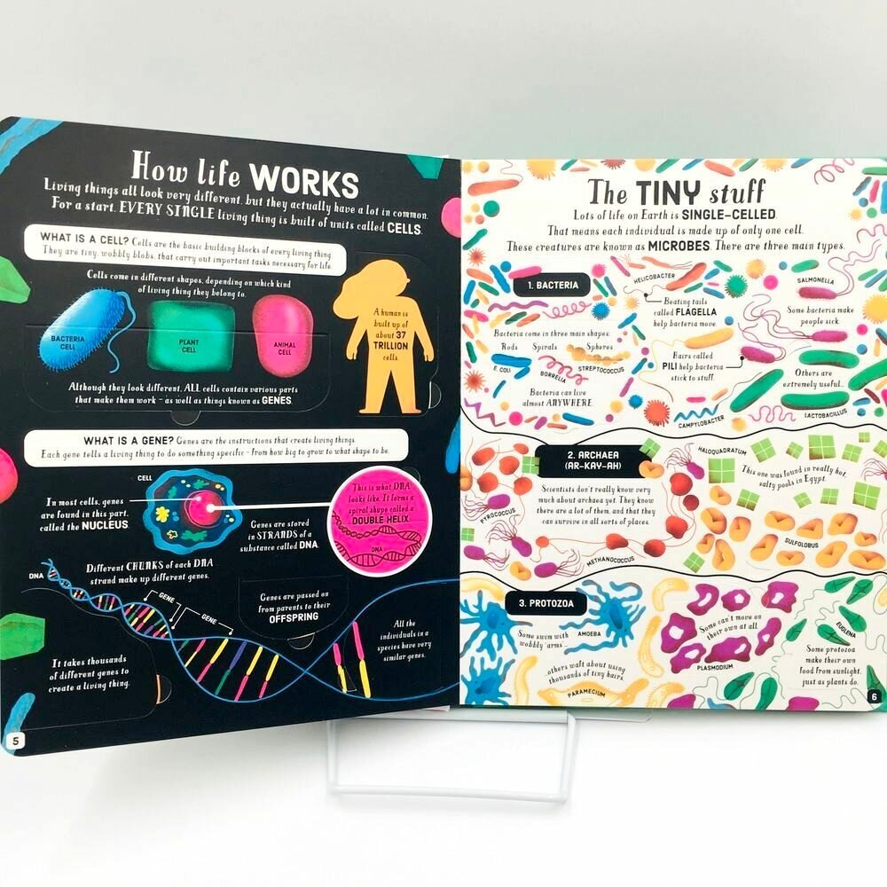 Dive into the amazing world of biology with this beautiful book full of places to explore and flaps to lift. Look at the whole tree of life from microscopic bacteria and scuttling bugs to swaying forests and ocean creatures, as well as the cells and genes that form them. What makes a living thing alive, what is biodiversity, and how can we protect life on Earth?