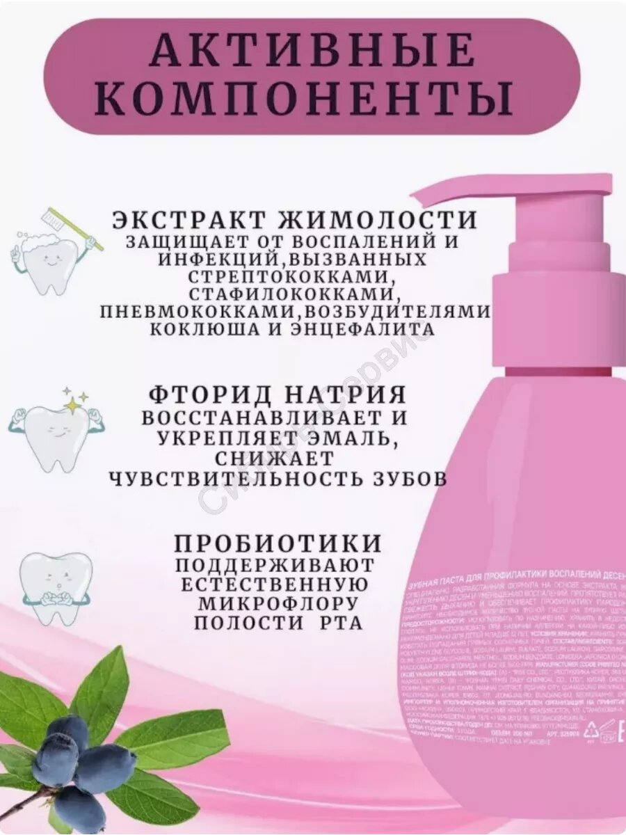 Специально разработанная формула на основе экстракта жимолости способствует укреплению десен и уменьшению воспалений. Благодаря входящим в состав активным компонентам паста препятствует развитию кариеса, придает свежесть дыханию и обеспечивает профилактику пародонтоза.
