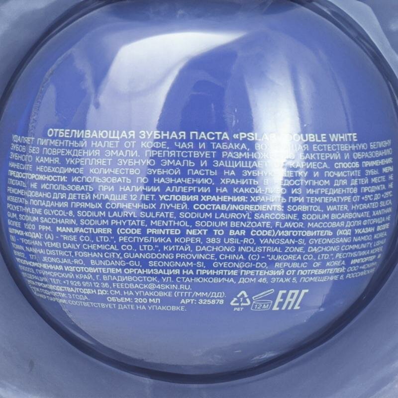 | Состав | Sorbitol, Water, Hydrated Silica, Polyethylene Glycol-8, Sodium Lauryl Sulfate, Sodium Lauroyl Sarcosine, Sodium Bicarbonate, Xanthan Gum, Stevioside, Menthol, Sodium Benzoate, Lonicera Japonica (Honeysuckle) Leaf Extract, Flavor. Массовая доля фторида не |