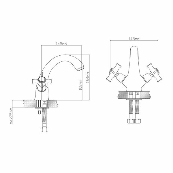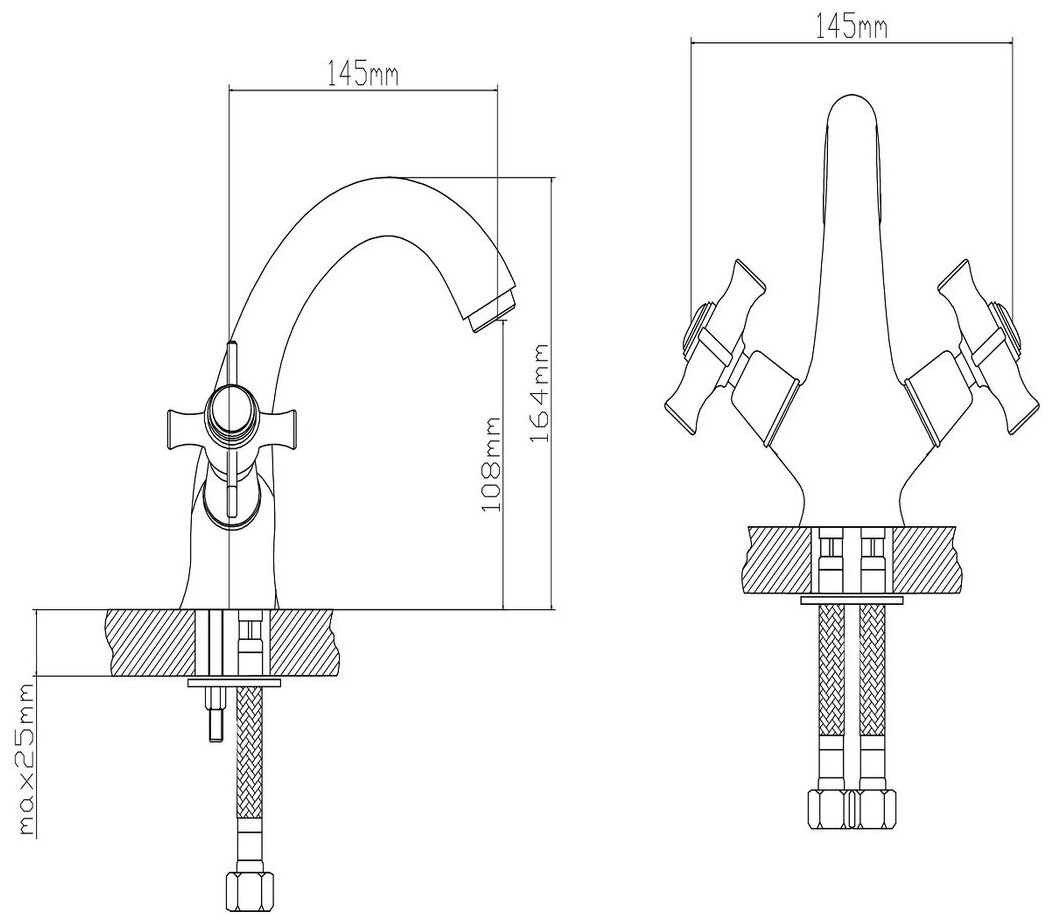 Смеситель для умывальника. Кран-букса латунная с керамическими пластинами. Материал: латунь. Крепление: шпилька. В комплекте подводка из нержавейки 60 см.