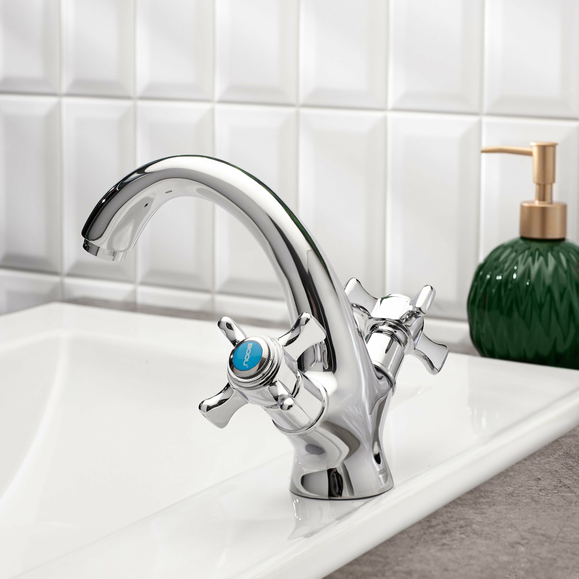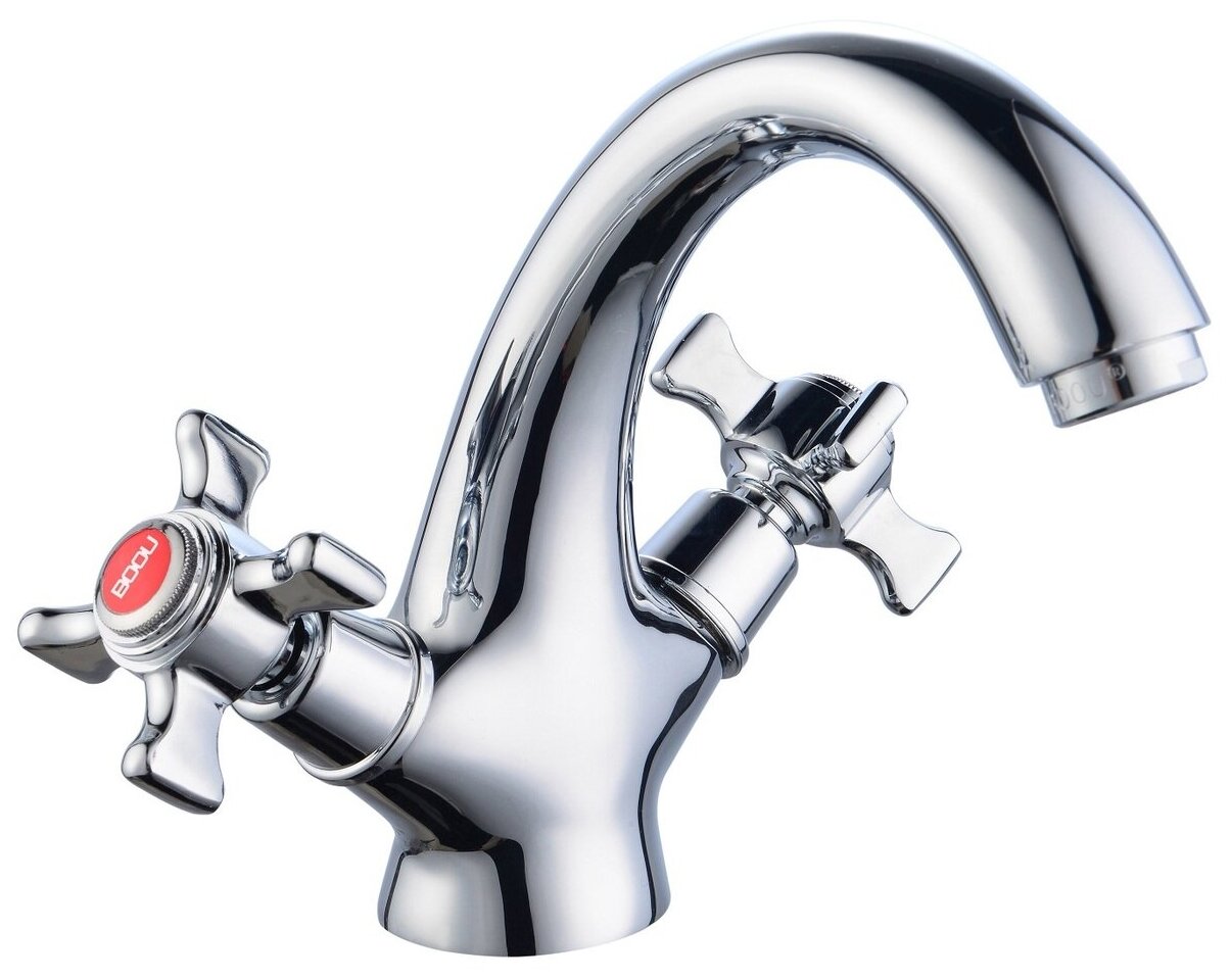Смеситель ТМ BOOU, это стильная классическая двуручковая модель, отлично дополнит не-глубокую раковину. Выполнен из Латуни высокой марки, что является гарантией качества и долговечности сме-сителя. Фирменные технологии производства картриджей BOOU создают плавность и точность регулировки напора и температуры воды, которая сохраняется на протяжении всего срока использования. Установка смесителя крайне проста, так как предусматривает минимальное количество крепежных деталей. В комплекте мы предоставляем салфетку из микрофибры для правильного ухода и подводку 60 см. В изготовлении подводки используется нержавейка, что в условиях влажности обеспечивает устойчивость к коррозии. Съемный аэратор гарантирует ровный и мягкий поток воды без брызг, а также экономит расход воды. На данный смеситель распространяется гарантия 7 лет.