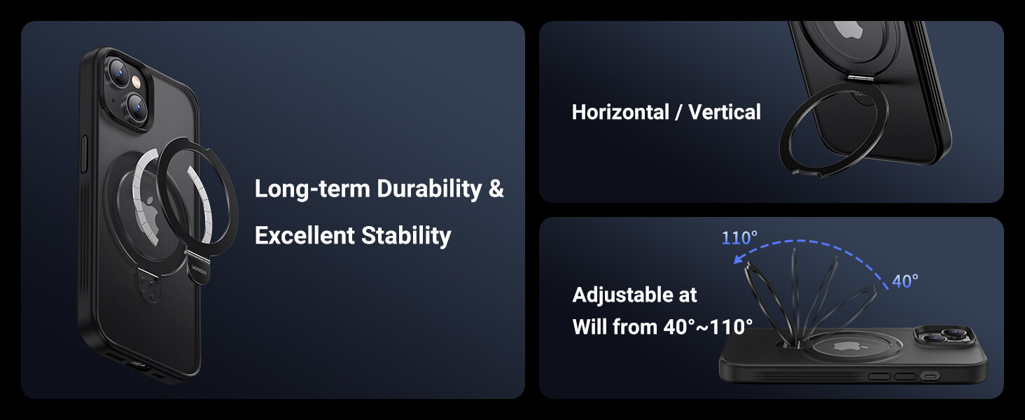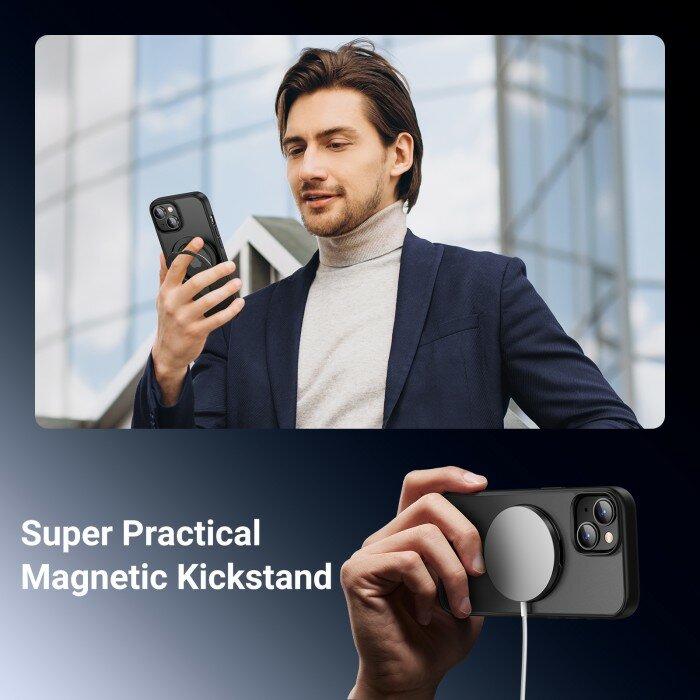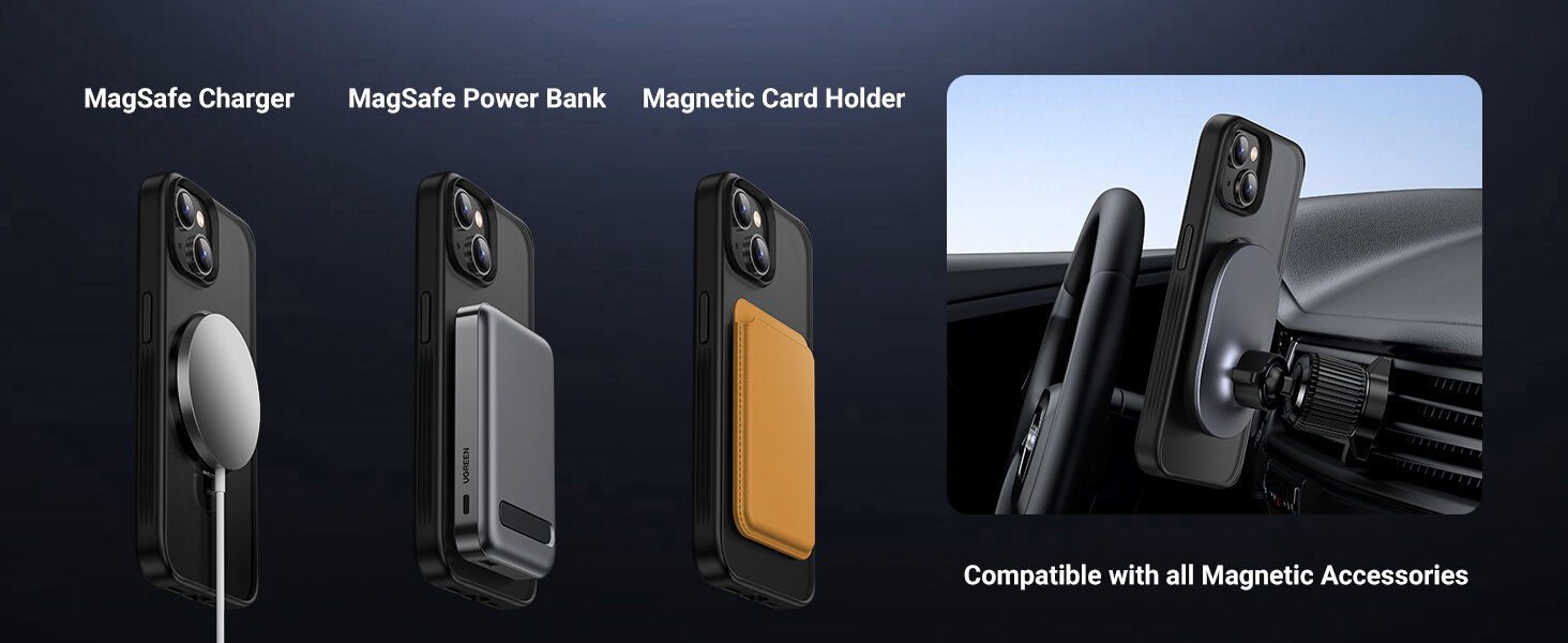 Чехол UGREEN для iPhone 15 Plus изготовлен из амортизирующих материалов, обеспечивающих комплексную защиту от случайных падений и царапин. Он был создан с учетом свободы использования, поэтому оснащен прочным магнитом, поэтому вы можете без каких-либо препятствий использовать магнитную зарядку, автомобильные крепления и т. д. Более того, в чехле имеется выдвижная подставка, которая позволит вам с комфортом смотреть фильмы или просматривать страницы в социальных сетях. Корпус также отличается высокой устойчивостью к износу.