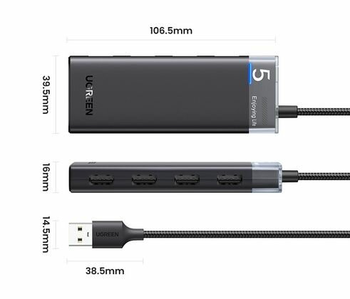 Разветвитель UGREEN 15548_ 4*USB-A черный CM653