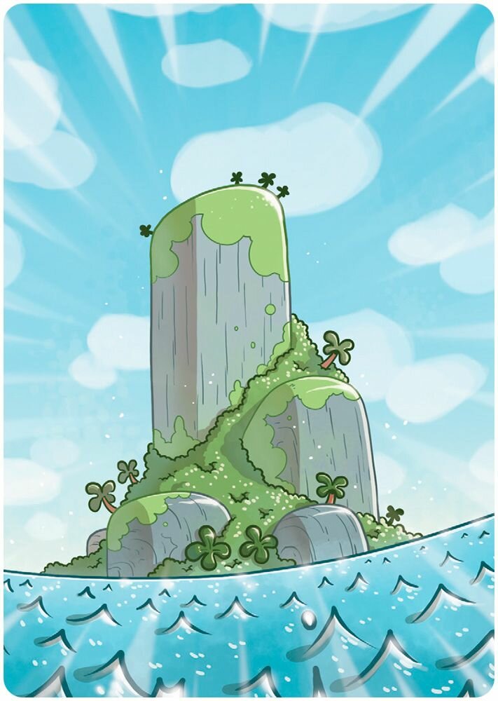 Не нужно быть матёрым моряком Игра очень простая, правила объясняются буквально в двух словах. Всё что нужно для игры – карты, тайлы, и парочка друзей. Открывайте карту пророчества, обратите внимание на иконки ресурсов и их количество. Затем расположите треугольные тайлы нужным образом, чтобы в центре оказались необходимые вам ресурсы. Вытягивайте следующие тайлы и старайтесь сложить центральный остров, наполненный точным количеством и видом ресурсов, указанных в вашей карте пророчества. Первый игрок, собравший такой остров, выигрывает раунд и забирает карту. Участник, который накапливает пять карт пророчеств, становится победителем игры. Комплектация