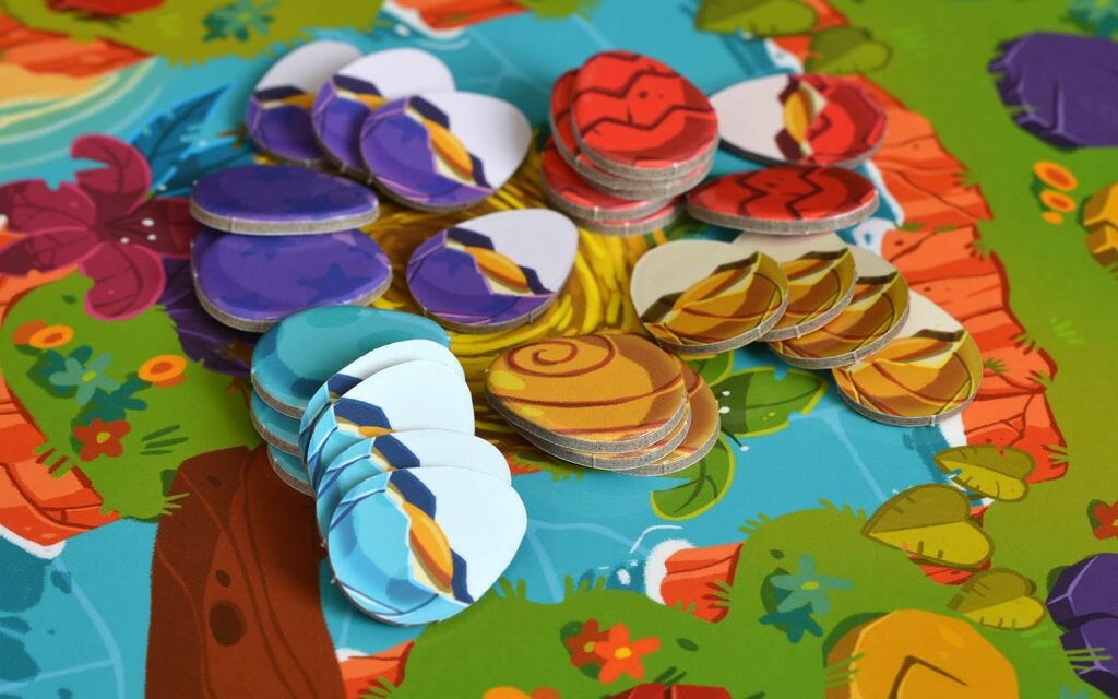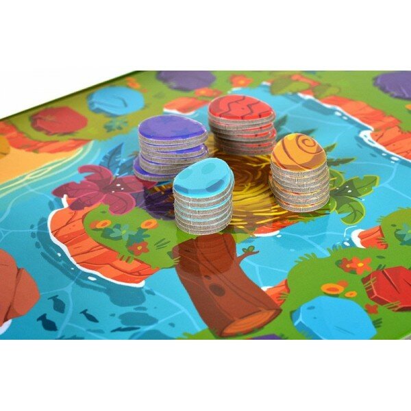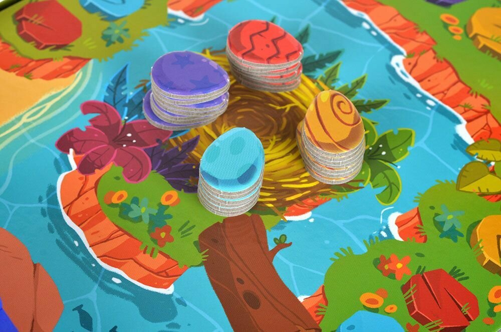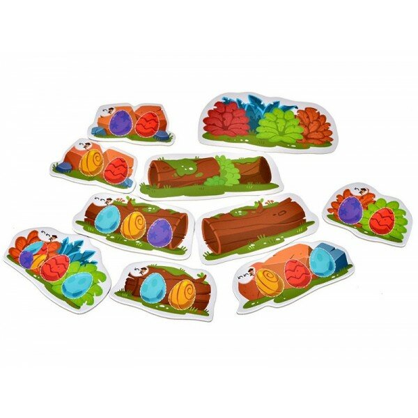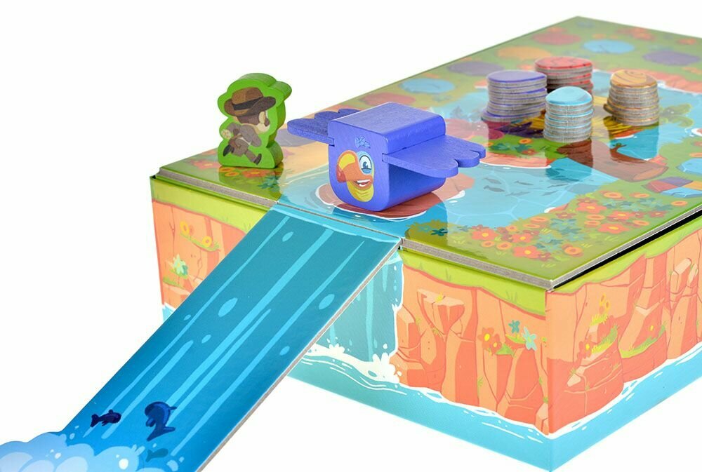 Хрупкая скорлупаПопуг оказывается на большом камне у водопада – значит, игра началась. Поместите одно из яиц ему на затылок или на крылья, а дальше наблюдайте за его грациозным скольжением по водной глади. Как только он остановится, яйцо упадёт на стол – посмотрите, какой стороной приземлился жетон яйца: целой или разбитой? В первом случае вам нужно положить яйцо на ячейку нужного цвета, во втором – охотник двигается на один ход ближе к своей цели. Если охотник успевает добраться до многоцветного камня в то время, когда в гнезде ещё остаются яйца, то игра заканчивается поражением Себастьяна. Но, если в гнезде больше нет яиц, то охотнику ничего не остаётся, кроме как сворачивать свою подлую миссию.