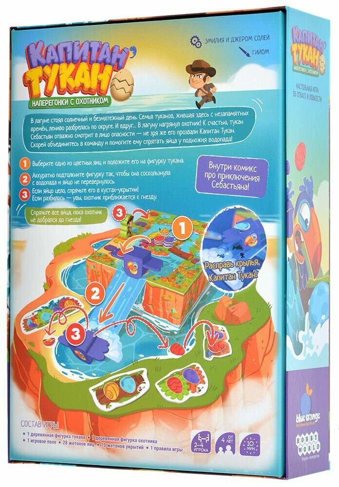 Лагуну освещало солнце и семейство туканов беззаботно занималось своими делами на здешних берегах. Вокруг царила гармония и спокойствие, но этот вайб у пернатых отнял охотник… Резко и дерзко он ворвался в лагуну, чтобы заполучить ценные яйца этих птиц. Хорошо, что тукан Себастьян не из робкого десятка и готов принять бой, чтобы защитить свою семью! Прозвище Себастьяна – Капитан Тукан и это неспроста, ведь он настоящий лидер, у которого всё под контролем.