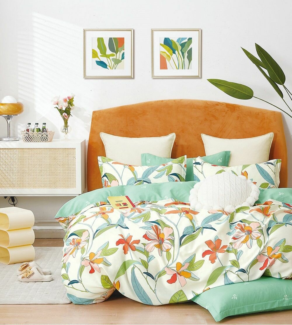 Постельное белье Randa цвет: зеленый оранжевый белый (2 сп) Narcissa (nas949629)