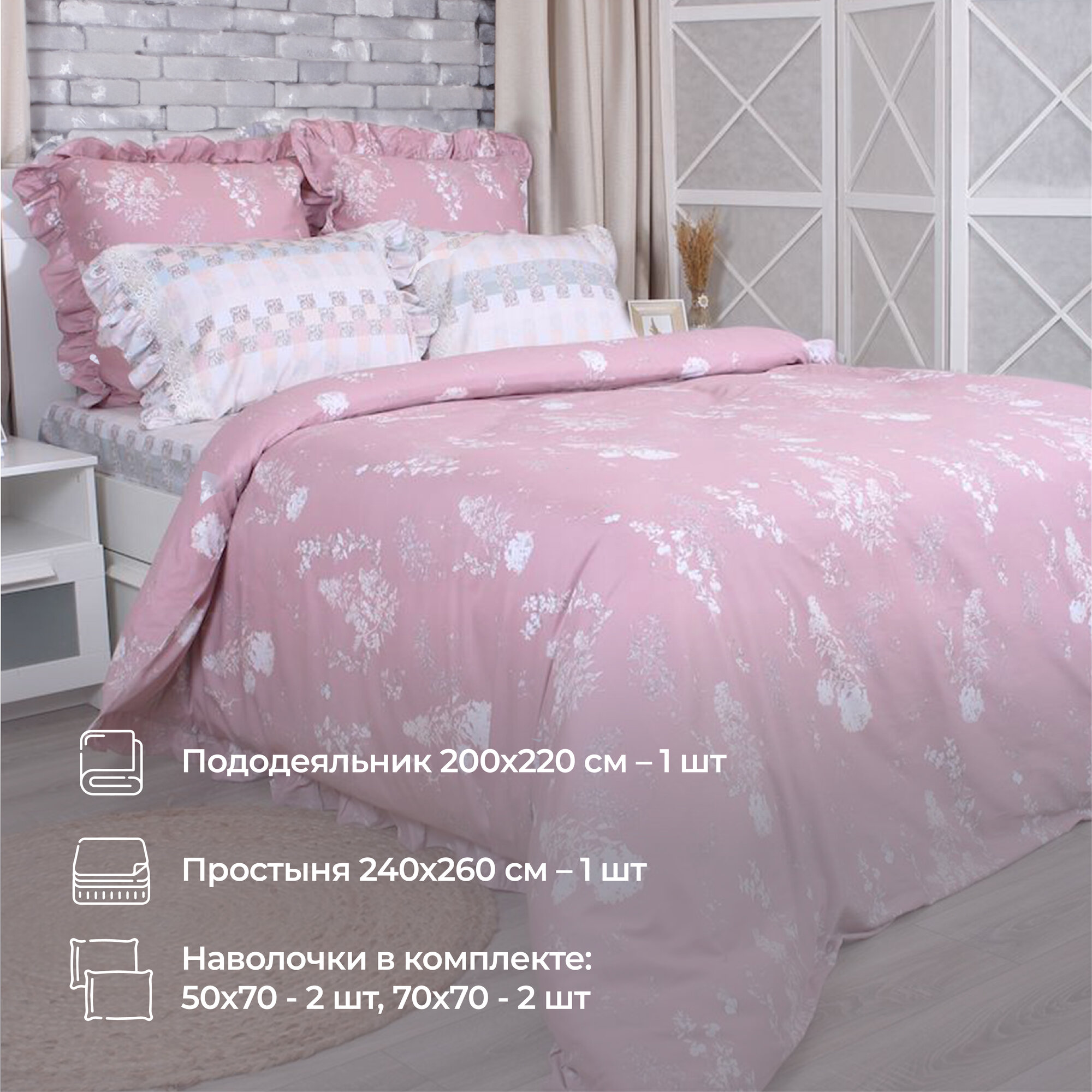 | Комплектация | Простыня 240х260 ,пододеяльник на молнии 200х220,наволочки 50х70-2шт,70х70-2 шт. |