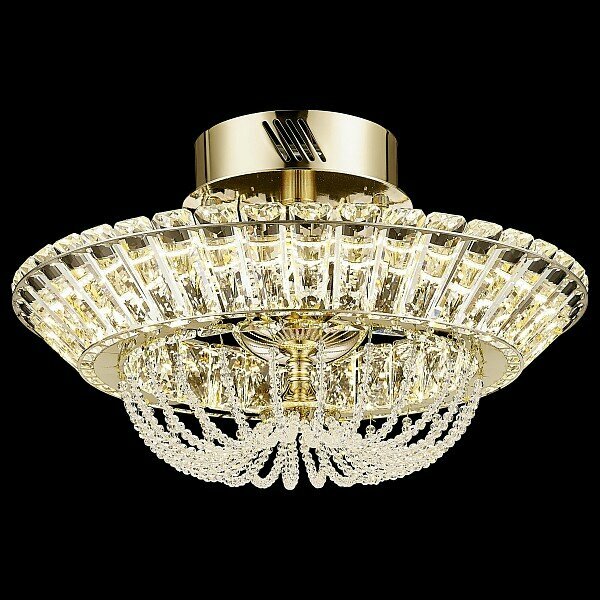 Люстра выполнена из высококачественного металла, что гарантирует ее долговечность и надежность. Цвет арматуры – золотой, что придает изделию особый шик и благородство.