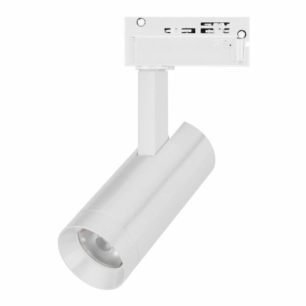 Светильник подвесной для треков/шин 2 провода. Мощность 7 Вт, св. поток 540 лм, 77 лм/Вт, дневной 4000 K, CRI>94, угол 24°, напряжение питания 230 В. Белый круглый корпус из алюминия, материал линзы PMMA , степень защиты IP20. Размер: диаметр 45 мм, высота 165 мм. Монтаж на трек 1-фазный. Драйвер встроенный 8.5-40 В, 150 мА., пульсация