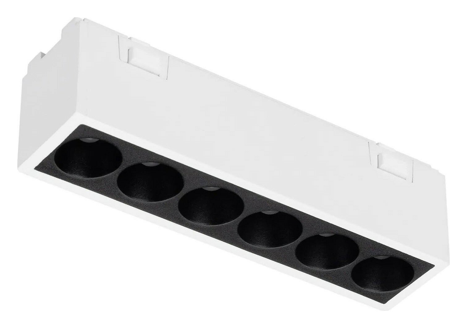 Линейный магнитный светильник MAG-VIBE-LASER-L101-6W Day4000 (WH, 24 deg, 48V) мощностью 6 Вт с дневным белым цветом свечения (4000 К), световой эффективностью 82 лм/Вт. Высокий индекс цветопередачи (CRI>90) и световой поток 490 лм - отличное решение для качественного освещения. Удовлетворяет требованиям проектов, так как обеспечивает наилучшую передачу цветов. Быстрый и надежный монтаж на узкий трек MAG-VIBE размерами 25 х 7мм и напряжением питания 48В выполняется с помощью магнитов и механических фиксаторов (драйвер поставляется отдельно). Узкий угол излучения 24° подходит для направленного освещения, а создаваемый эффект свечения DARKLIGHT («свет из ниоткуда») очень востребован при создании интерьеров со скрытой установкой источников света. Длина светового модуля 101 мм. Минимальный коэффициент пульсации (менее 1%) гарантирует зрительный комфорт без пульсаций. Корпус светильника окрашен в белый цвет, выполнен с защитой от пыли IP20, и позволяет применять модель внутри помещений, где нет контакта с водой или другими жидкостями. Расширенная гарантия до 5 лет указывает на длительную работоспособность системы. Идеально подходит для освещения жилых, офисных, коммерческих и других помещений.
