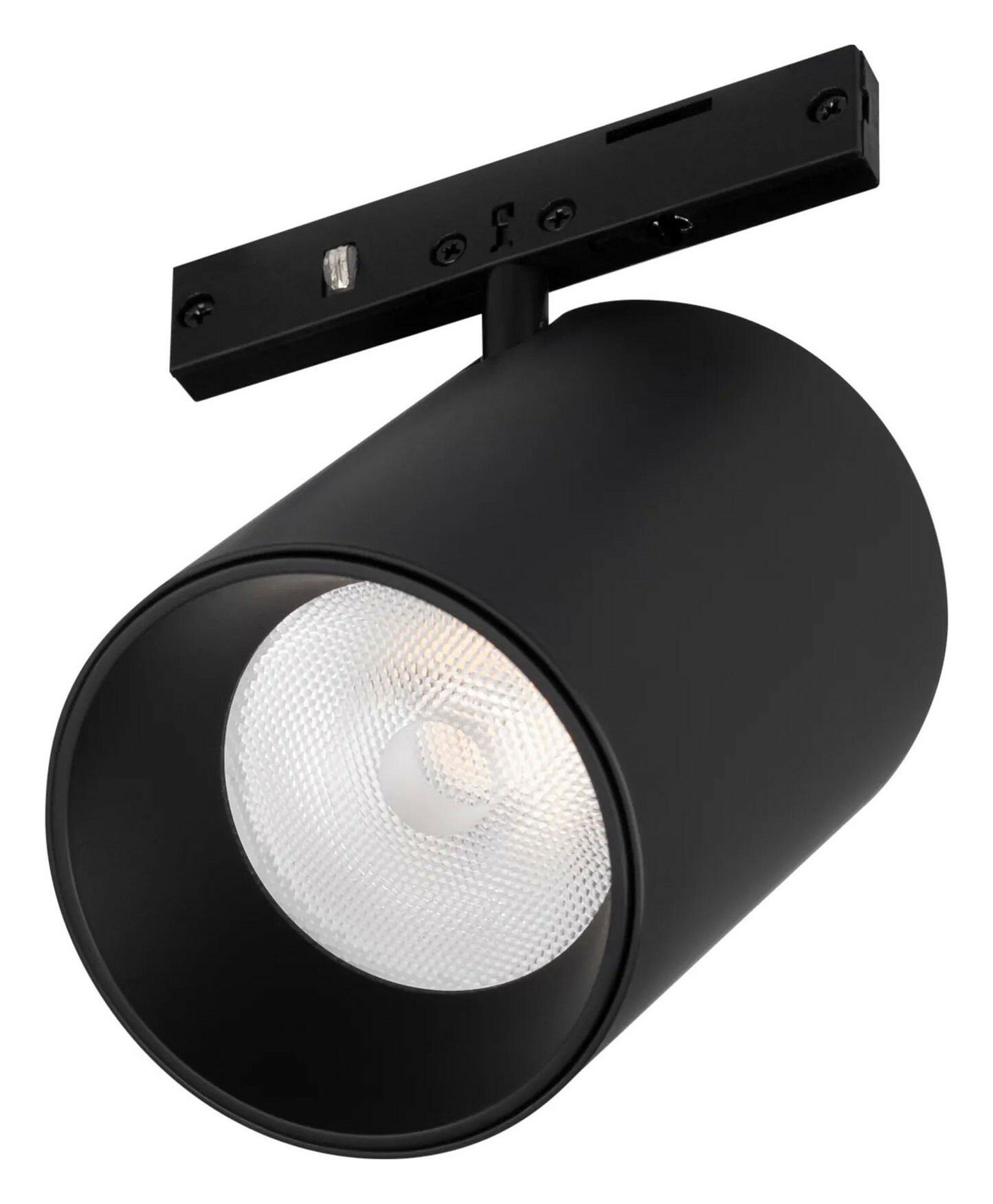 Светильник для магнитных треков MAG-MICROCOSM шириной 11 мм. Мощность 9 Вт, св. поток 565 лм, 63 лм/Вт, дневной 4000 K, CRI>90, угол 36°, напряжение питания 24 В. Черный фигурный корпус из алюминия, экран поликарбонат, степень защиты IP20. Размер: диаметр 45 мм, высота 63 мм. Монтаж на трек MICROCOSM. Пульсация