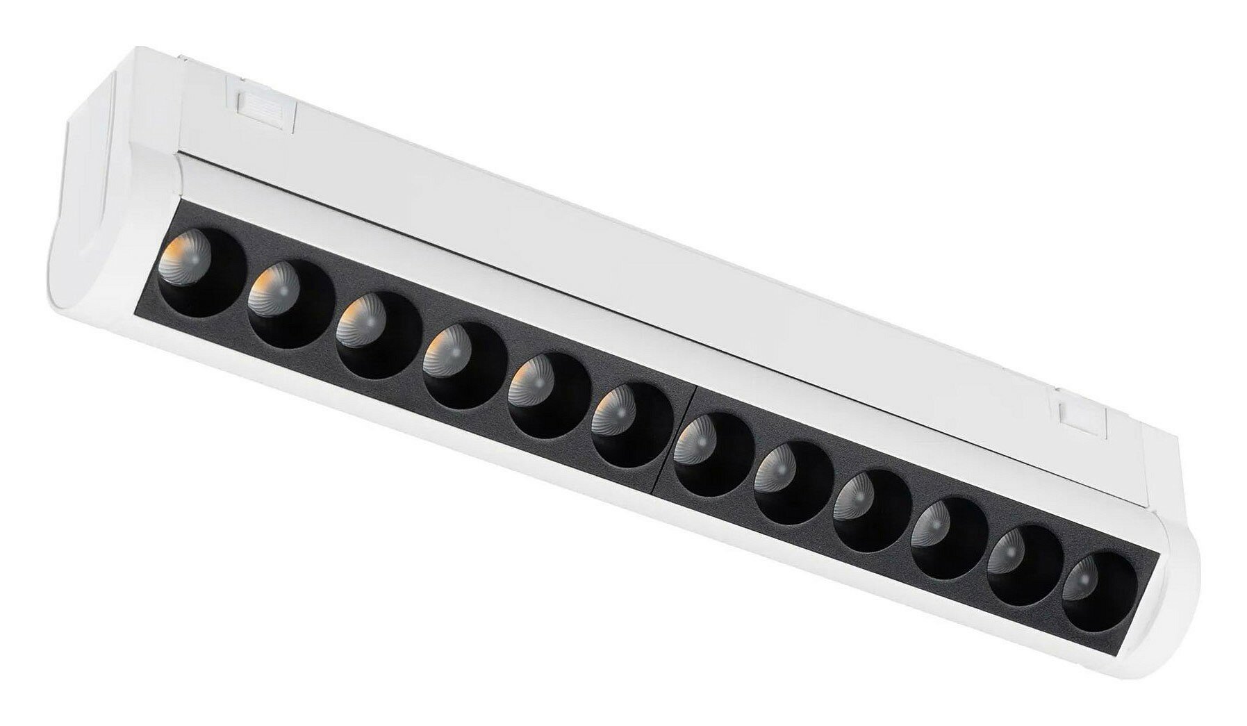 Линейный магнитный светильник MAG-VIBE-LASER-TURN-L209-12W Warm3000 (BK, 24 deg, 48V) мощностью 12 Вт с теплым белым цветом свечения (3000 К), световой эффективностью 74 лм/Вт. Высокий индекс цветопередачи (CRI>90) и световой поток 890 лм - отличное решение для качественного освещения. Удовлетворяет требованиям проектов, так как обеспечивает наилучшую передачу цветов. Быстрый и надежный монтаж на узкий трек MAG-VIBE, размерами 25 х 7мм и напряжением питания 48В, выполняется с помощью магнитов и механических фиксаторов (драйвер поставляется отдельно). Узкий угол излучения 24° применим для организации направленного освещения. Световой модуль поворачивается на 180°, что позволяет мгновенно отрегулировать и поменять направление света. Минимальный коэффициент пульсации (менее 1%) гарантирует зрительный комфорт без пульсаций. Корпус светильника окрашен в черный цвет и выполнен с защитой от пыли IP20 для применения внутри помещений, где нет контакта с водой или другими жидкостями. Расширенная гарантия до 5 лет указывает на длительную работоспособность системы. Идеально подходит для освещения жилых, офисных, коммерческих и других помещений.