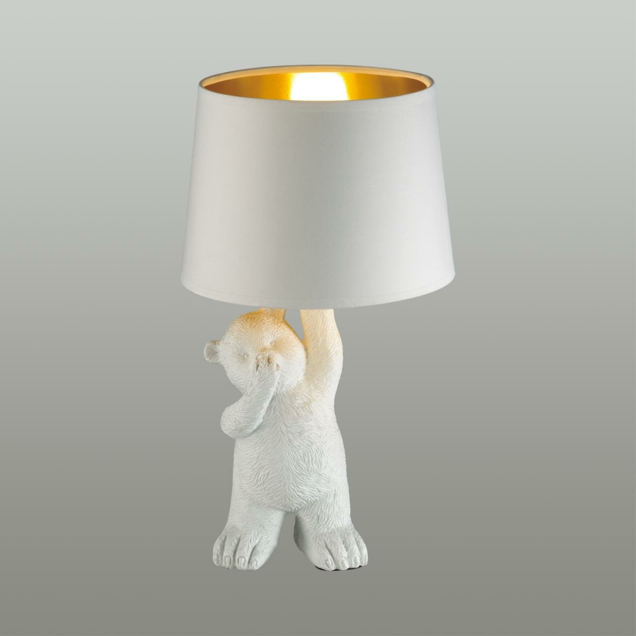 Настольная лампа Bear с текстильным абажуром и основанием в форме медведя - это необычное сочетание функциональности и игривого дизайна. Она представлена в двух вариантах цвета: белом и чёрном. Основание лампы выполнено из полирезина и имитирует форму медвежонка, что придает ей уникальный и привлекательный вид. Абажур из текстиля создает мягкий и рассеянный свет, который создаст уютную атмосферу в комнате.