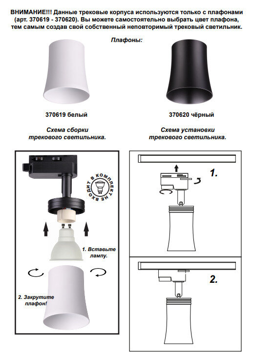 Однофазный светильник для шинопровода с лампочкой Novotech 370617+Lamps