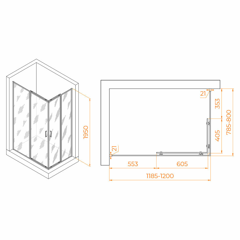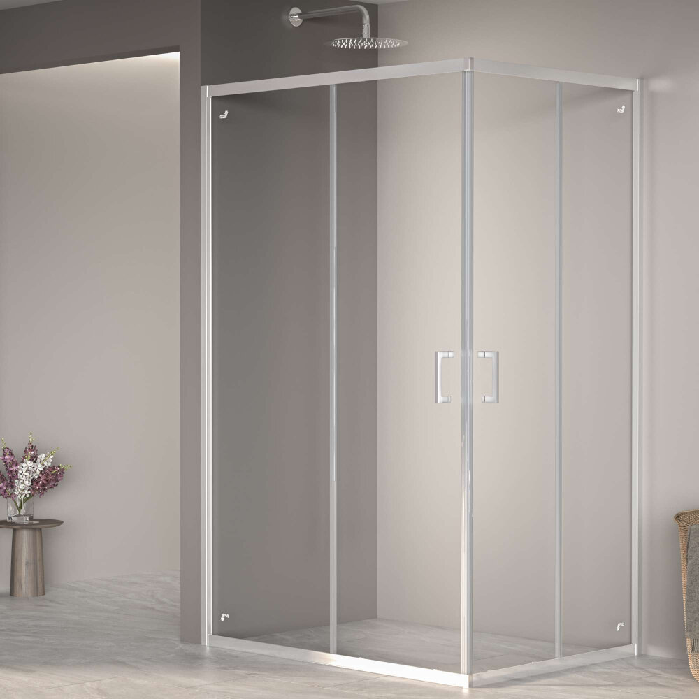 В комплект поставки входит: Душевой уголок. Покрытие стекла анти капля: Easy Clean. Высокопрочное закаленное стекло. Форма: Прямоугольная. Конструкция дверей: Раздвижная. Установка в нишу.