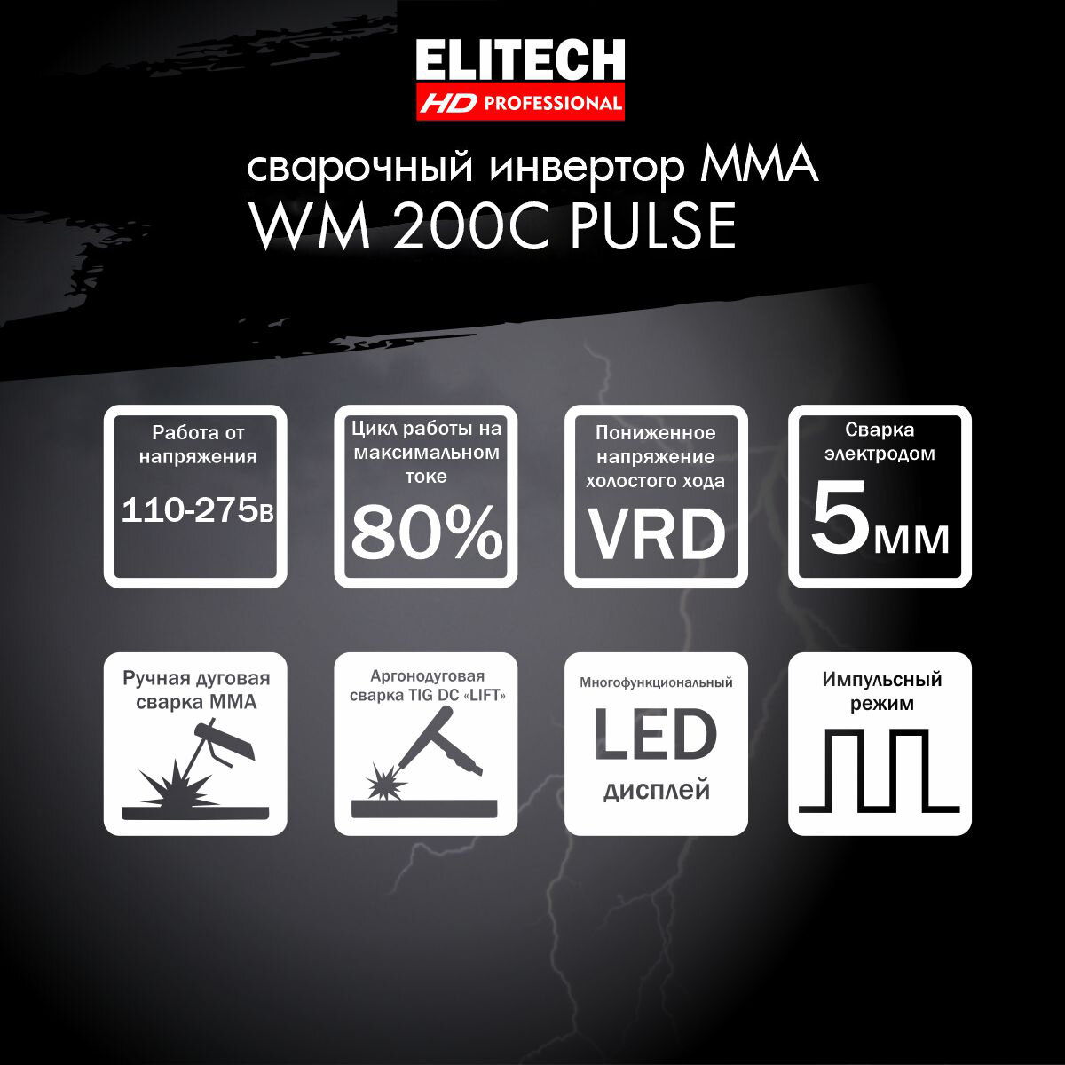 Сварочный инвертор Elitech HD WM 200C PULSE