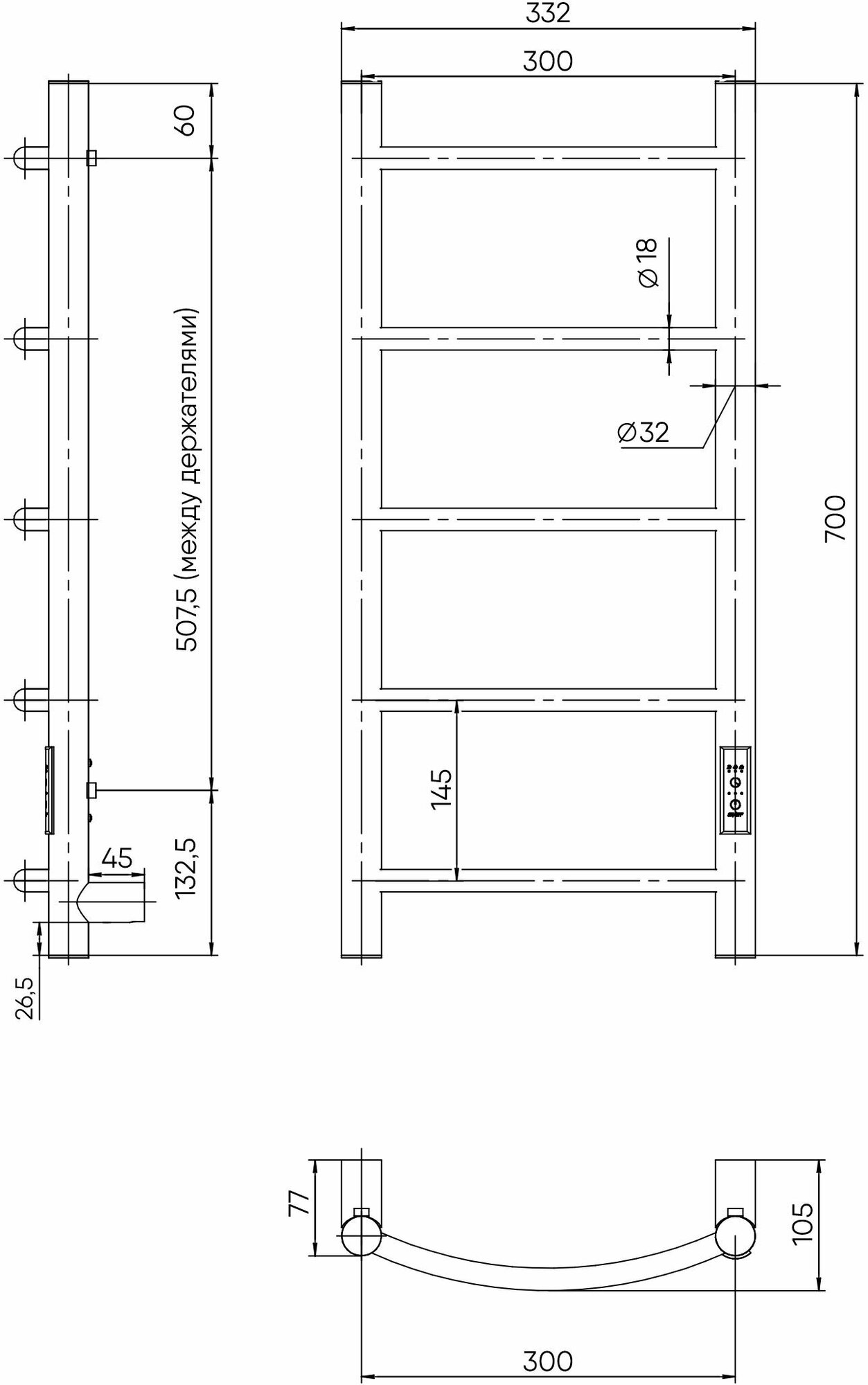 Полотенцесушитель электрический Indigo Arc Lux 30x70 LCALE70-30Rt серебристый (размер: 30x70 см)