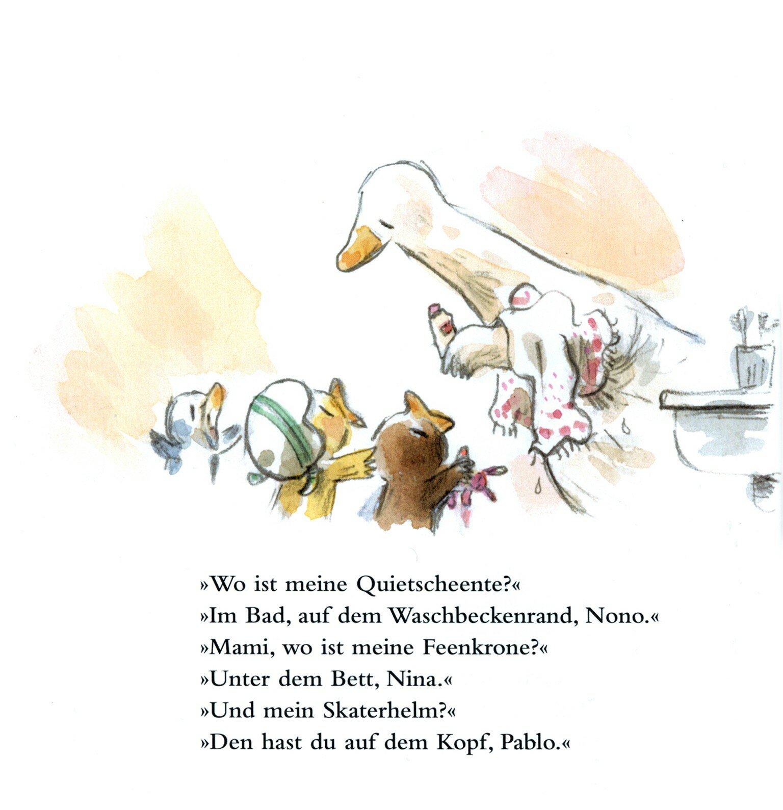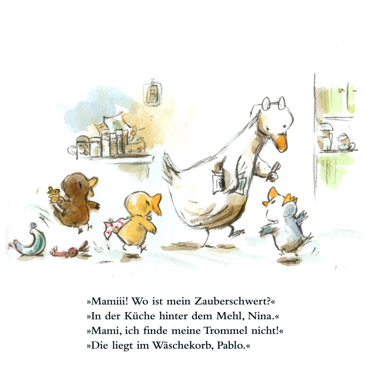 Schlie?lich hat Mama eine bestechende Idee: Sie verzieht sich mit ihrem Buch nach drau?en auf einen Ast. „Zum Gluck finden sie nie was!“