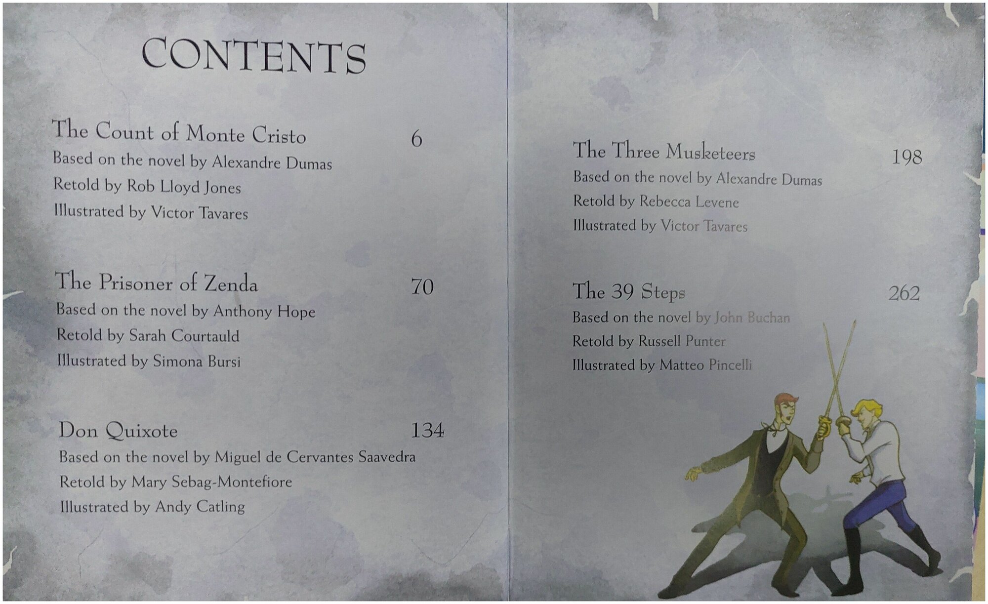 Includes ‘The Count of Monte Cristo’, ‘The Prisoner of Zenda', 'The Three Musketeers’, The 39 Steps' and 'Don Quixote'.