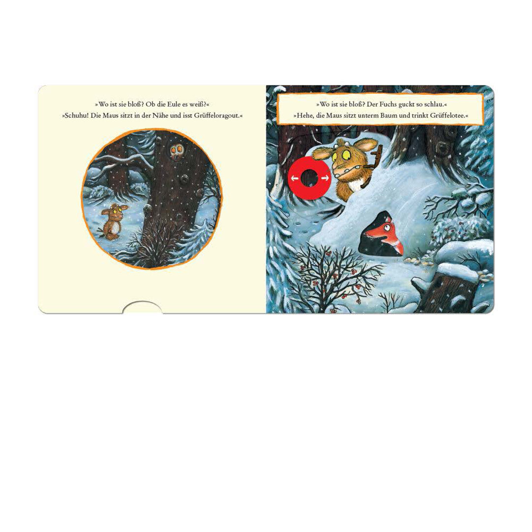 Die beruhmte Geschichte vom Gruffelokind als Pappbilderbuch zum Spielen: Der dunkle Wald, so warnt der Gruffelo sein Kind, ist voller Gefahren, dort lebt die gro?e, bose Maus. Das Gruffelokind glaubt ihm nicht und schleicht sich aus der Hohle. Mutig fragt es nacheinander Schlange, Eule und Fuchs, ob es die bose Maus wirklich gibt. Durch einfaches Schieben, Ziehen und Drucken der Bildelemente konnen schon ganz kleine neugierige Kinder der Geschichte spielerisch folgen. Das fordert Koordination und Feinmotorik und macht gro?en Spa?.