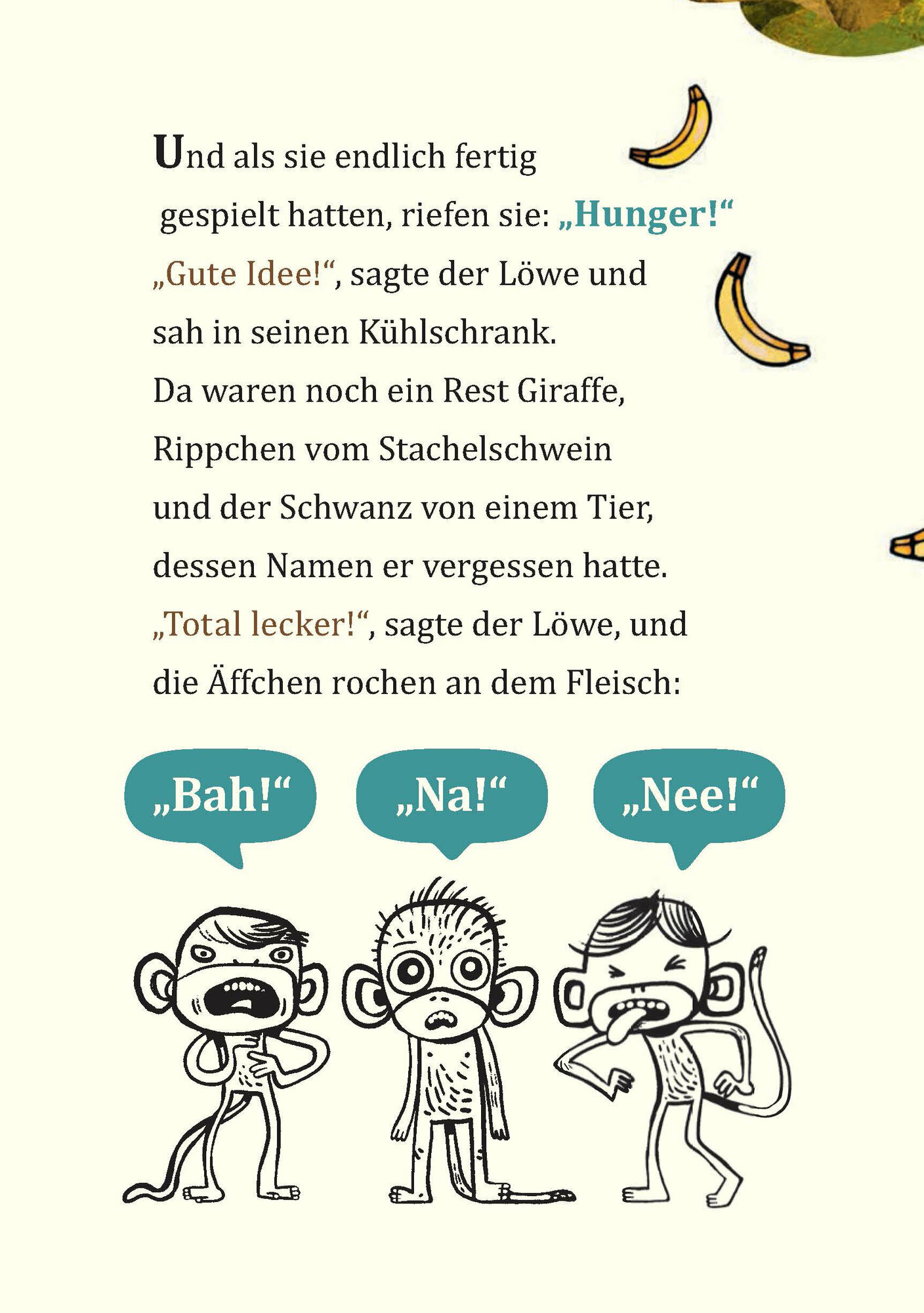 Martin Baltscheits lowenstarke Leseabenteuer bringen Kinder zum Lesen. Und vielleicht auch zum Singen?! Neeeiiin, SINGEN ist nichts fur den Lowen. Brullen, das kann er! Doch als der Lowe in der Bredouille steckt, drei Affenkinder huten zu mussen, sind plotzlich andere Qualitaten gefragt. Spielen wollen die Affen, Hunger und Durst haben sie und dann brauchen sie auch noch ein Gute-Nacht-Lied! Da steht dem Lowen die Mahne zu Berge. Zum Gluck halten die Tiere des Dschungels zusammen und bringen im Lowen eine langst vergessene Saite zum Klingen.