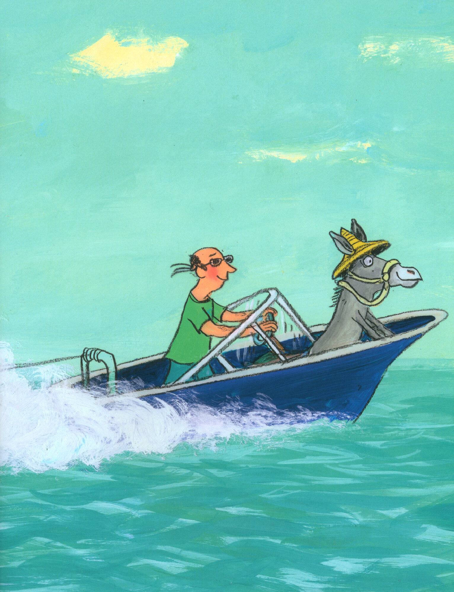Papa und Mika machen Strandurlaub: Sonnenschirm aufbauen, baden, lesen, Federball spielen. Bis der Eiswagen klingelt. Da rennt Mika los, um Eis zu holen, wird aber aufgehalten – und da ist der Wagen auch schon wieder weg. Also nichts wie hinterher! Die Jagd nach dem Eiswagen ist eine turbulente, spannende und sehr witzige Geschichte, an der ein Esel mit gelbem Sommerhut, eine Gemusefrau, ein Busfahrer, ein Wasserskibetreiber und eine Pilotin beteiligt sind.