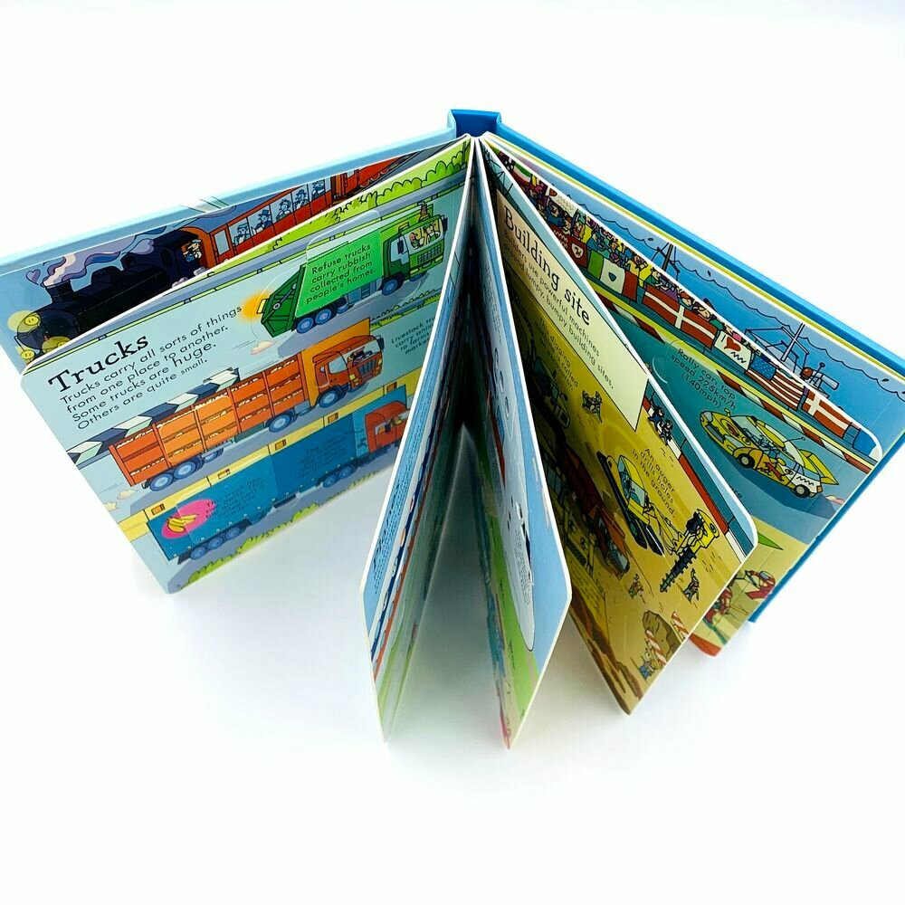 Lift the flaps to explore all sorts of exciting vehicles – bulldozers rumbling around building sites, fire engines rushing to emergencies, and jumbo jets soaring into the skies. With fascinating facts about every vehicle, from speed machines to giant trucks, emergency vehicles, tractors, and planes all geared to delight enquiring minds. The colourful scenes are covered with flaps, each packed with even more detail to entertain young readers.