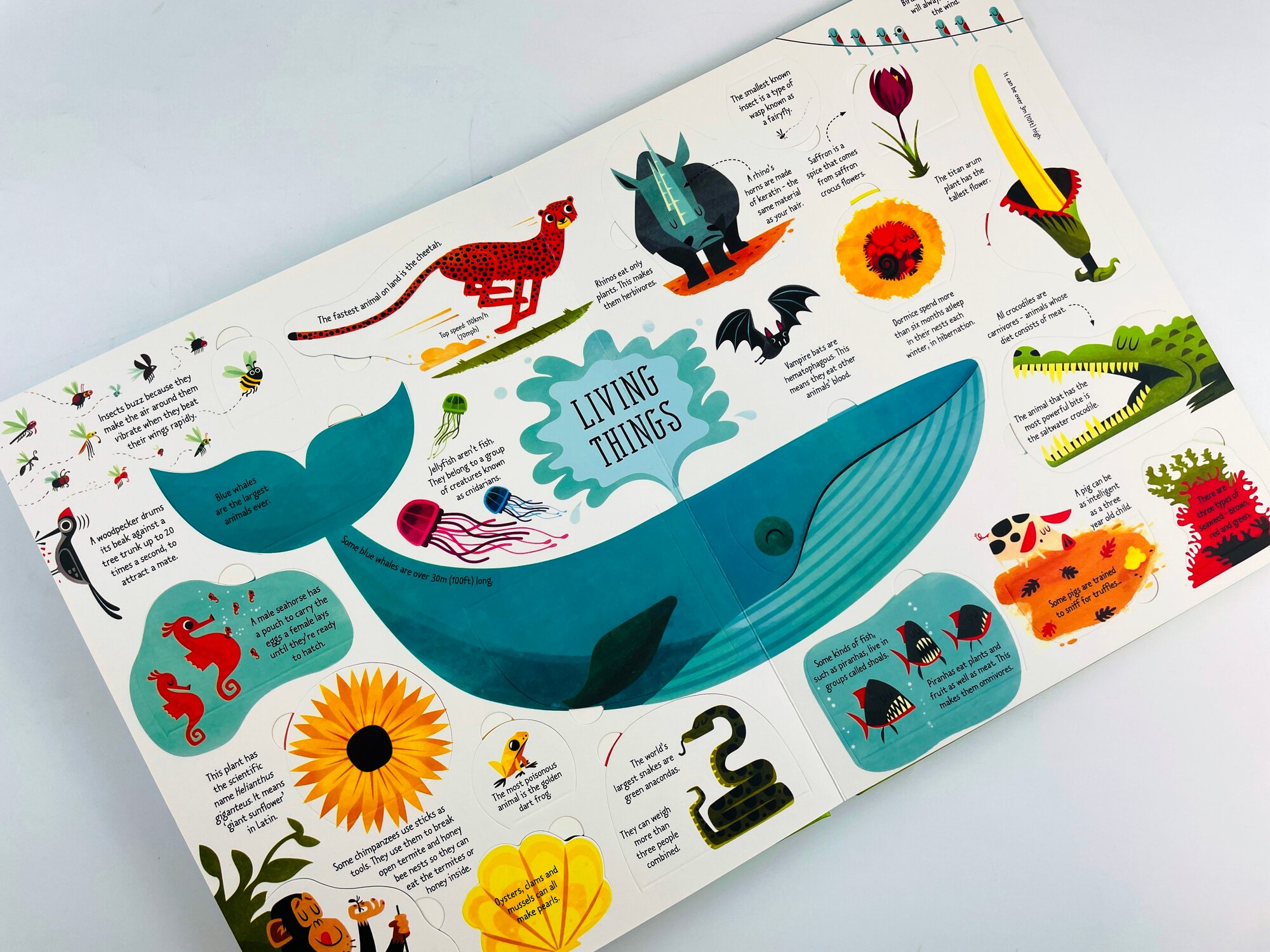 Over 135 flaps to uncover fascinating facts such as what karaoke means in Japanese, how the Mona Lisa got her name and how many people are descended from Genghis Khan. Divided into subjects such as Living Things, Science Lab, Treasure Trove, and When Did It Happen? with topics including the periodic table, the formation of the Earth, saltwater crocodiles, the great pyramid of Giza and lots more. Ideal for improving general knowledge and guaranteed to keep fact-loving, question-asking children entertained for hours.