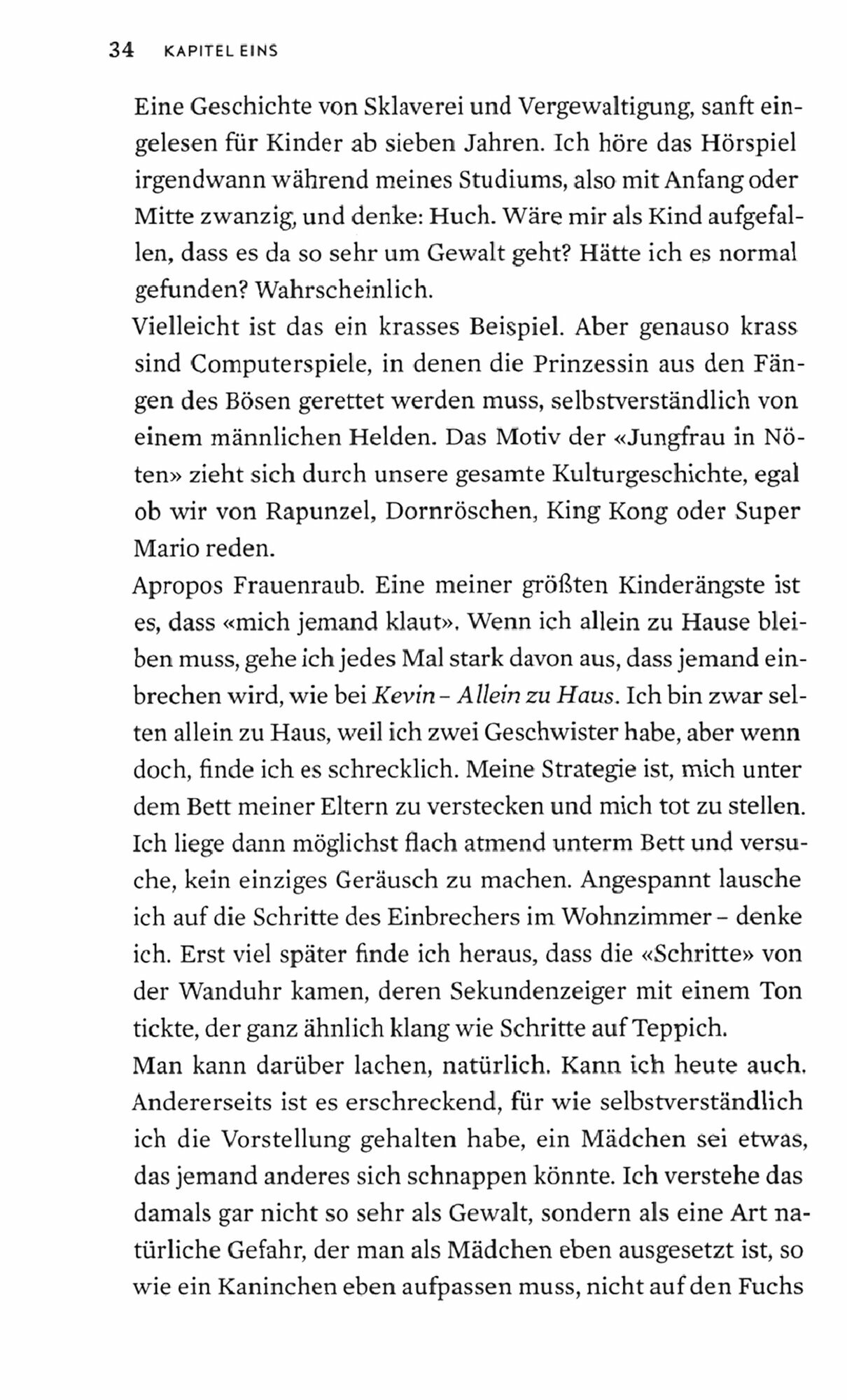«Der Feminismus erklart mir nicht, warum der Bus nicht auf mich wartet. Aber er erklart mir, warum ich mich fur mein Zuspatkommen entschuldigen werde, auch wenn ich nicht schuld war, sondern der Bus zu fruh gefahren ist. Er erklart mir, warum viele der Frauen, die ich kenne, sich auch noch entschuldigen wurden, wenn sie von einem Meteoriten getroffen werden.»