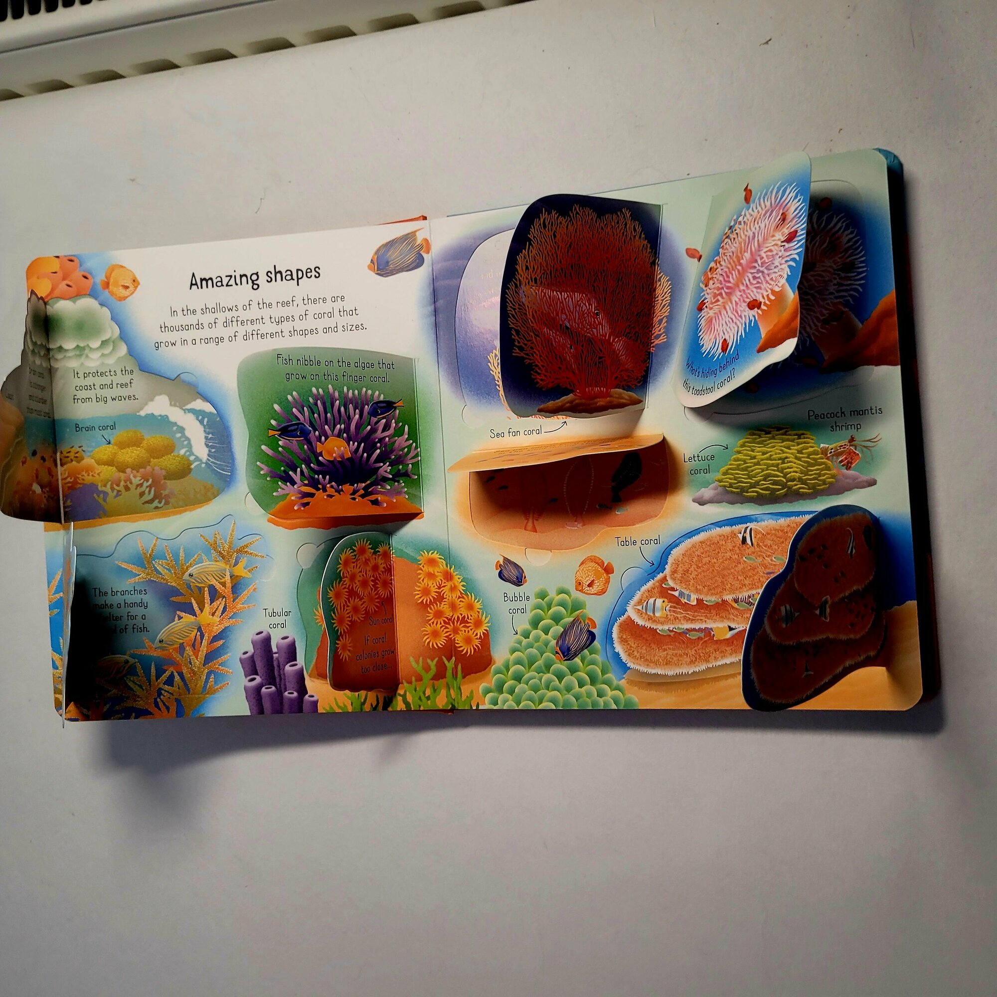 Open the flaps and peer among spectacular coral shapes to see a magical world of sea creatures living in a reef. From turtles, fish and sharks to octopus, sponges and sea horses. Find out what coral is and how a reef forms, and discover the threat to all coral reefs from warming oceans and pollution.