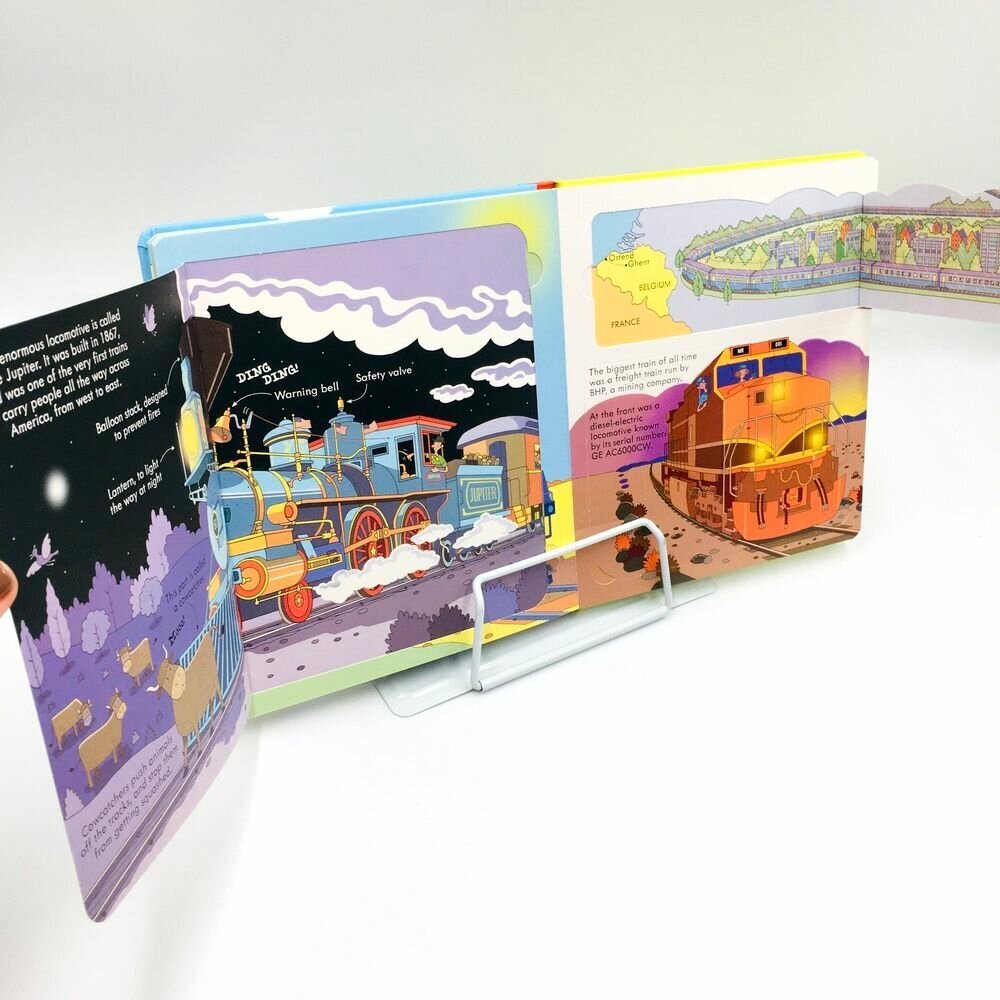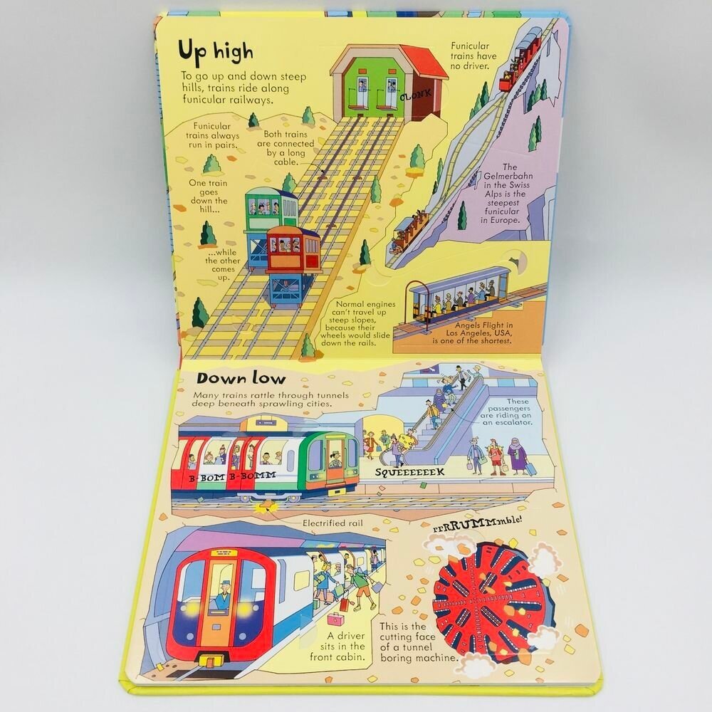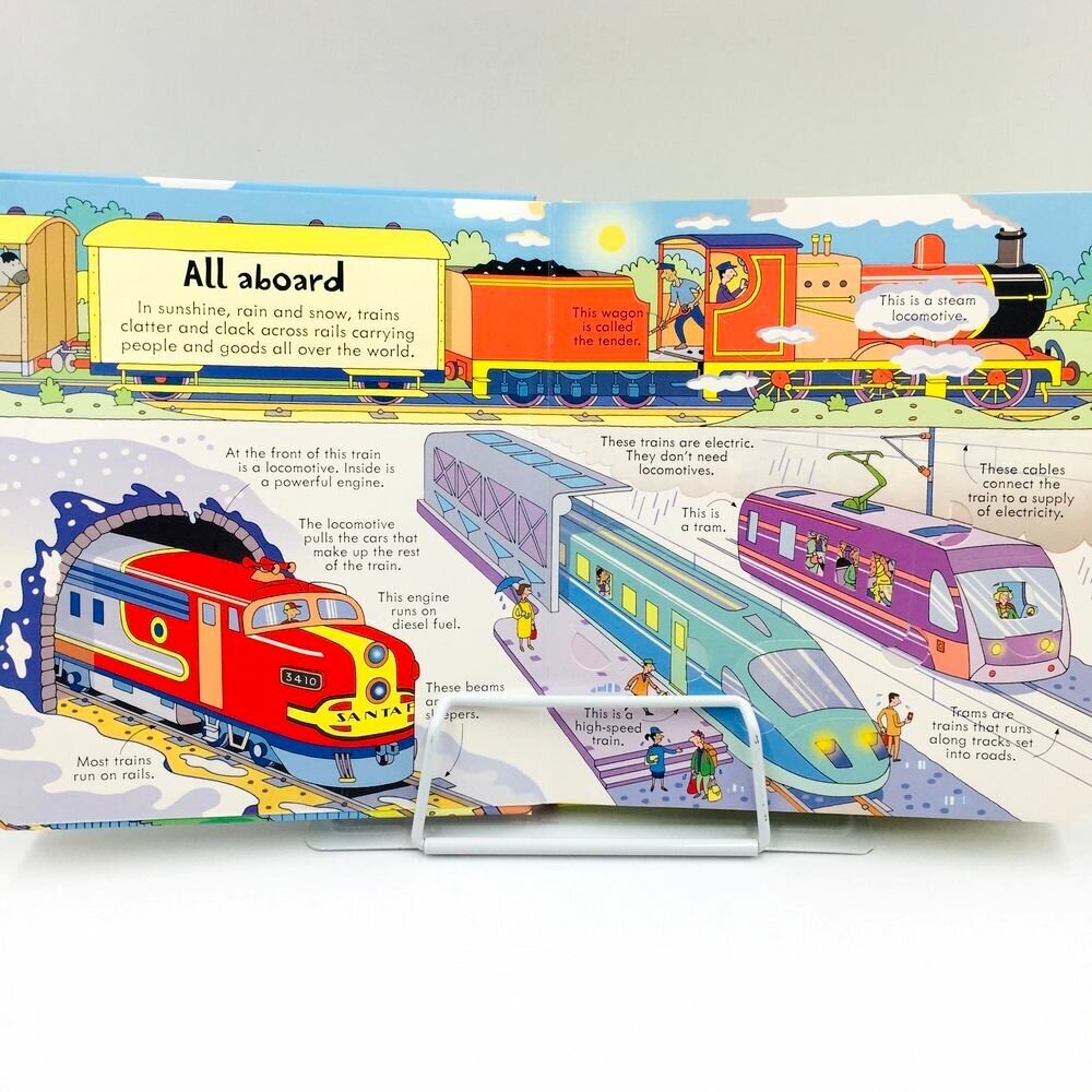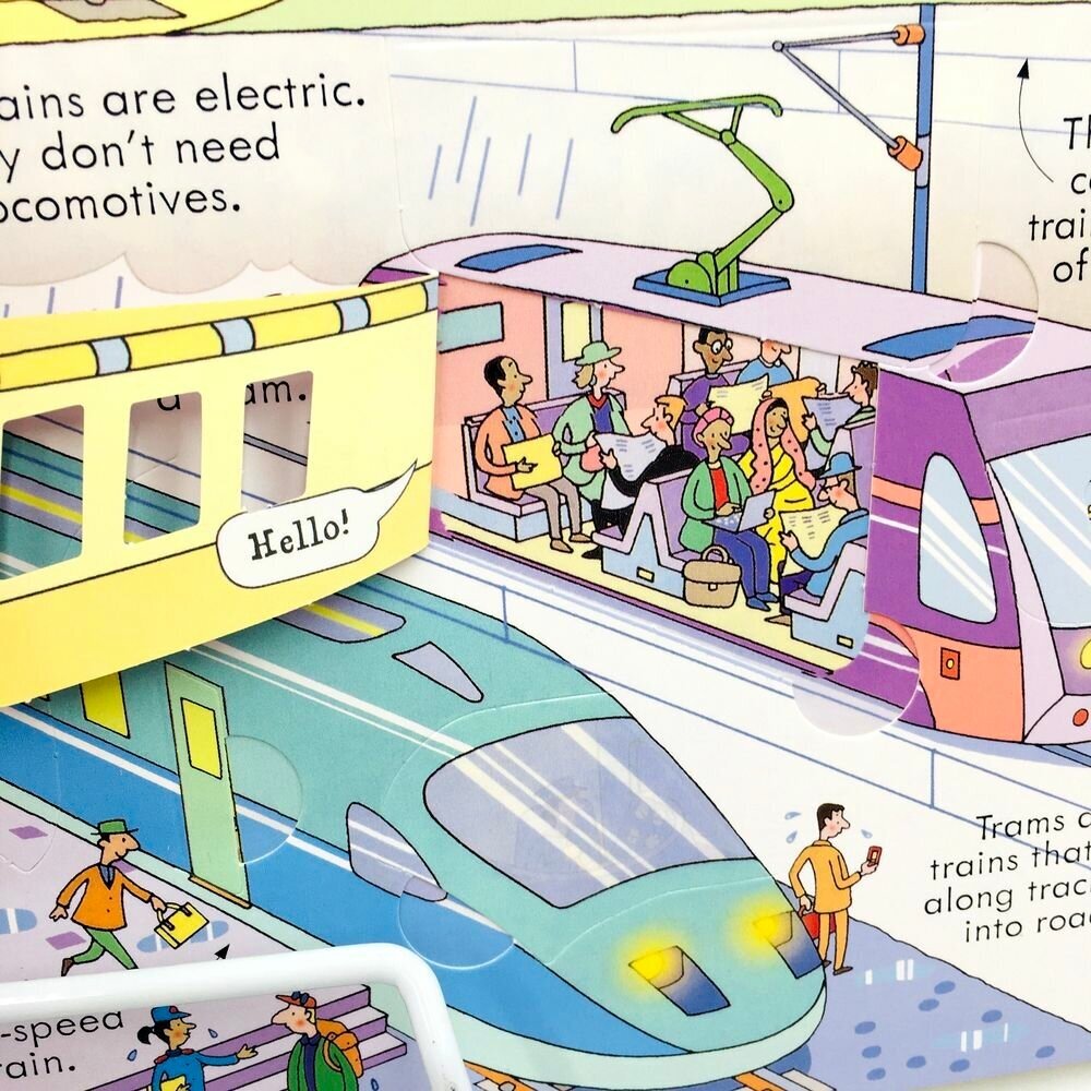 Toot! Toot! The steam train whistles. “Clickety-clack! The freight train rattles. Lift the flaps to discover how trains work, what they do, and where in the world they go. From traditional steam trains to super-fast bullet trains, trams and funicular railways, children will love lifting the flaps to discover how different types of trains work. With lots of fun facts about about the history of train travel and famous trains and railways from around the world. Perfect for any little train enthusiast.