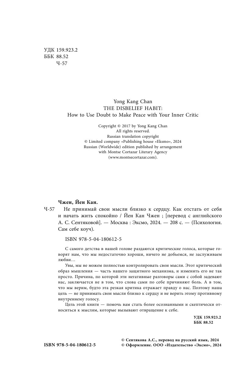 Не принимай свои мысли близко к сердцу. Как отстать от себя и начать жить спокойно (Чжен Йен Кан); ООО "Издательство "Эксмо", 2023